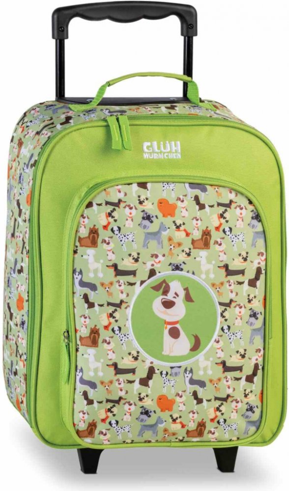 Dětský cestovní kufr se dvěma kolečky německé značky Fabrizio v limetkově zelené barvě s motivem pejsků. S tímto pohodlným cestovním kufrem zažije vaše dítě jistě mnoho dobrodružných cest, na které se nezapomíná. Kufry na kolečkách nezatěžují záda.