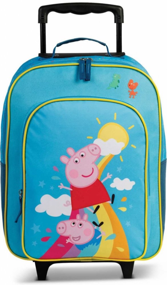 Dětský cestovní kufr se dvěma kolečky německé značky Fabrizio v krásné světle modré barvě v oblíbeném motivu Prasátko Peppa. S tímto pohodlným cestovním kufrem zažije vaše dítě jistě mnoho dobrodružných cest, na které se nezapomíná. Kufry na kolečkách nezatěžují záda.