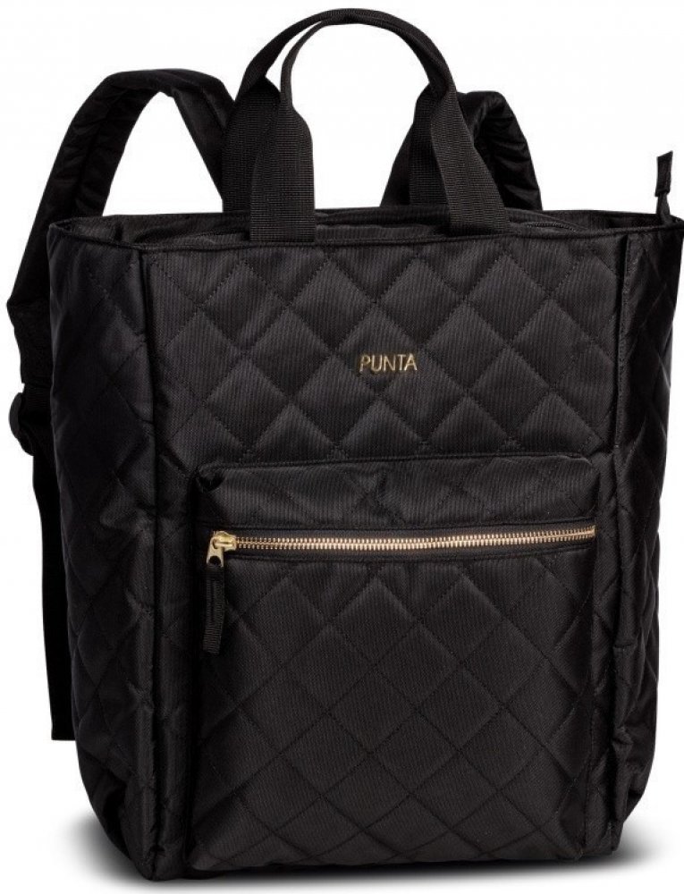 Elegantní dámský batoh německé značky Punta v černé barvě s prošitím ve tvaru čtverců. Tento městský batoh ze série Punta Classy se hodí na každodenní cesty do zaměstnání, ale i na procházky městem. Batoh můžete nosit buď klasicky na zádech a nebo za dvě poutka v ruce jako tašku.
