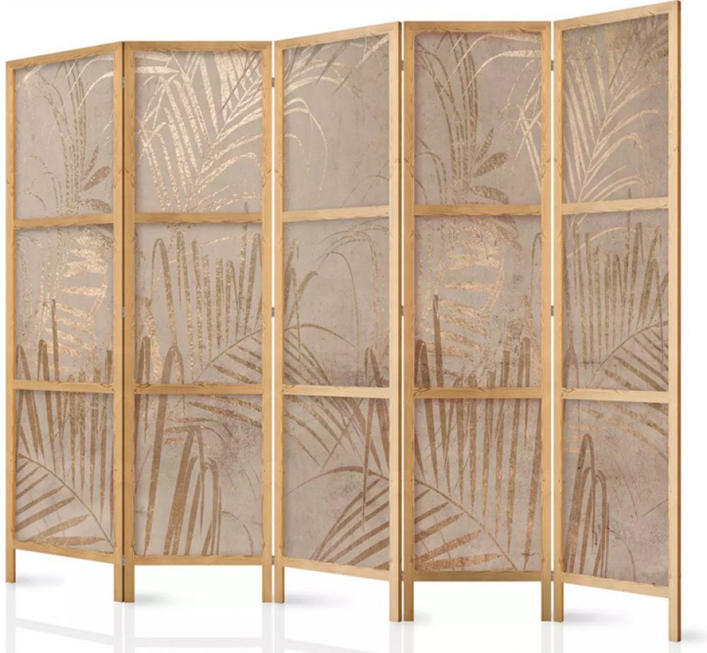 Fabulo Dřevěný paraván 5-dílný Zlaté palmy 172 x 225 cm potisk na jedné straně paravánu