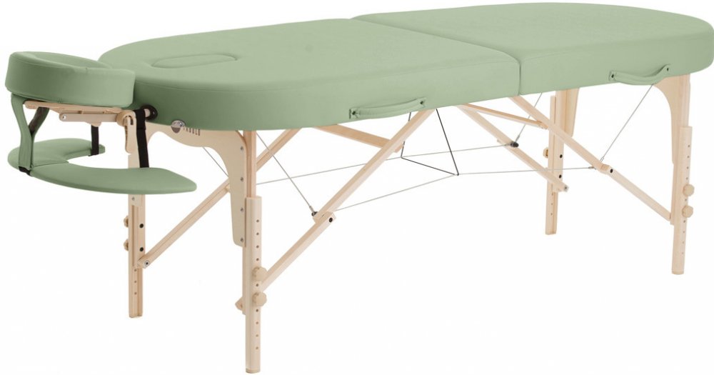Fabulo USA Dřevěný masážní stůl Fabulo guru Oval Set 192 x 76 cm 7 barev Barva: bledě zelená 192 x 76 cm 16,3 kg 3 barvy