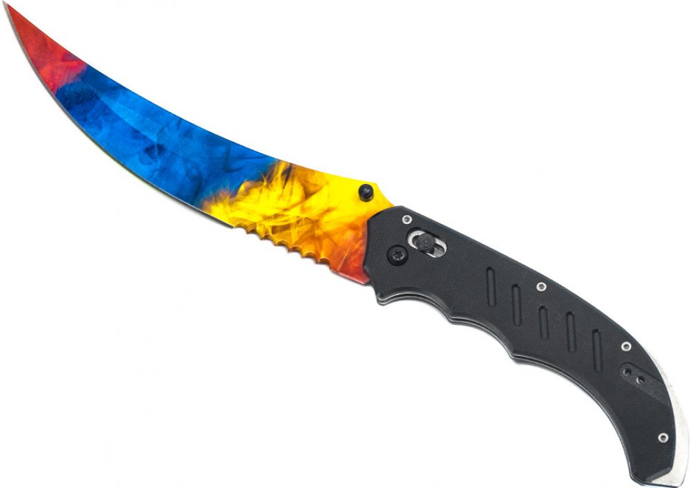 Ostrý sběratelský nůž Flip Knife v barevném provedení "Marble Fade" je navržen podle hry Counter-Strike 2.