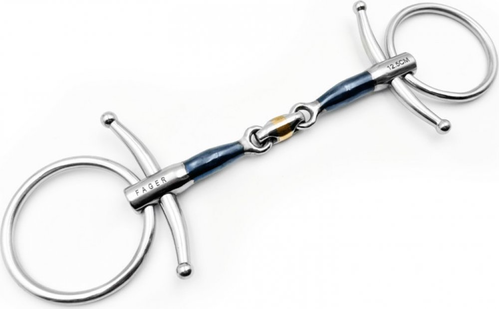 Správné umístění udidla: logo koníka je pravé straně koně a zobrazený koník směřuje dopředu. Taktéž nápis Fager míří směrem vpřed.