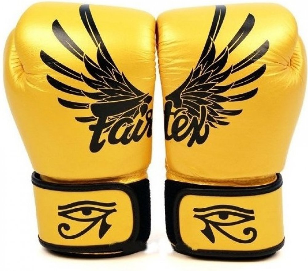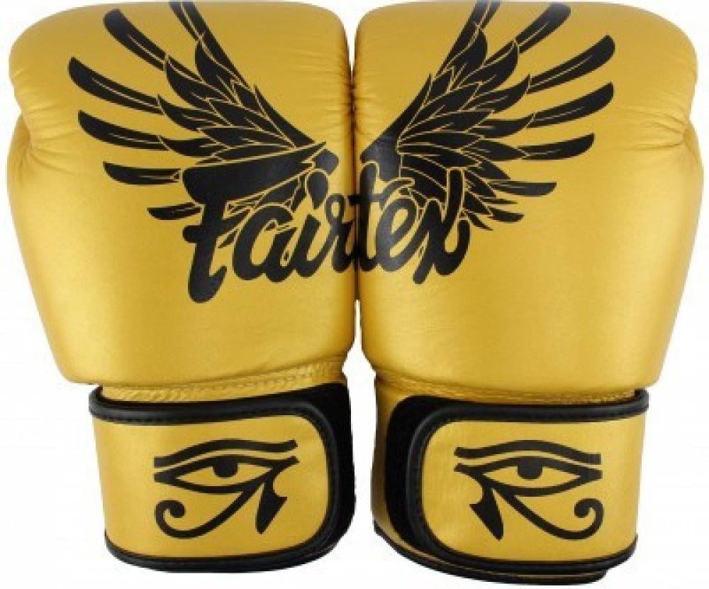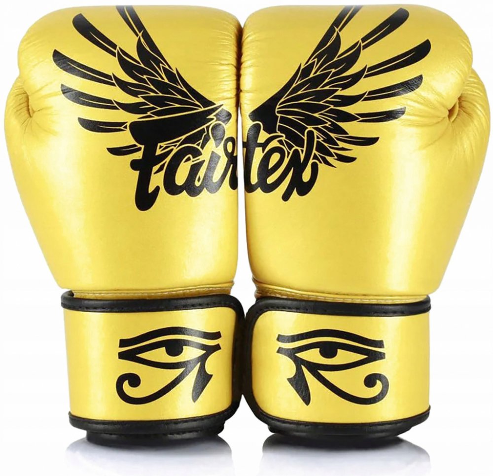 Fairtex Boxerské rukavice BGV1 FALCON GOLD Zlato představuje sílu, sílu a dokonalost. Fairtex Boxerské rukavice FALCON GOLD v zlaté barvě s vlastním logem Fairtex. Boxerské Rukavice mají také prominentní dva speciální atributy starého boha Horus : pár sokolových křidélek a výrazné Eyes of Horus . Horus převzal podobu sokolu, jehož levé oko představuje Měsíc a jeho pravé oko, slunce. Fairtex Boxerské rukavice jsou vyrobeny Premium Grade pravá kůže. Boxerské rukavice Fairtex skvěle padnu na ruku a jsou na suchý zip. Ergonomicky navržená konstrukce. Fairtex boxerské rukavice jsou vyrobeny v Thajsku.Fairtex
