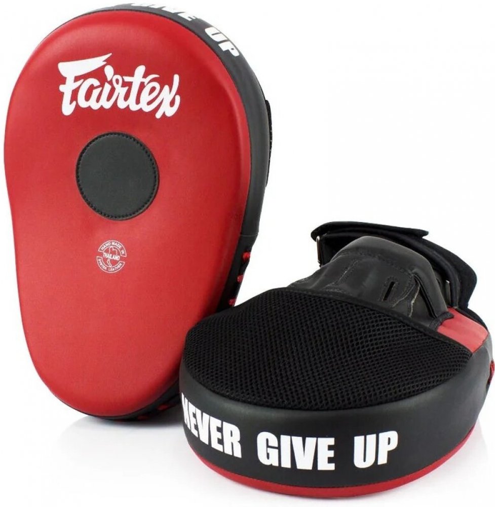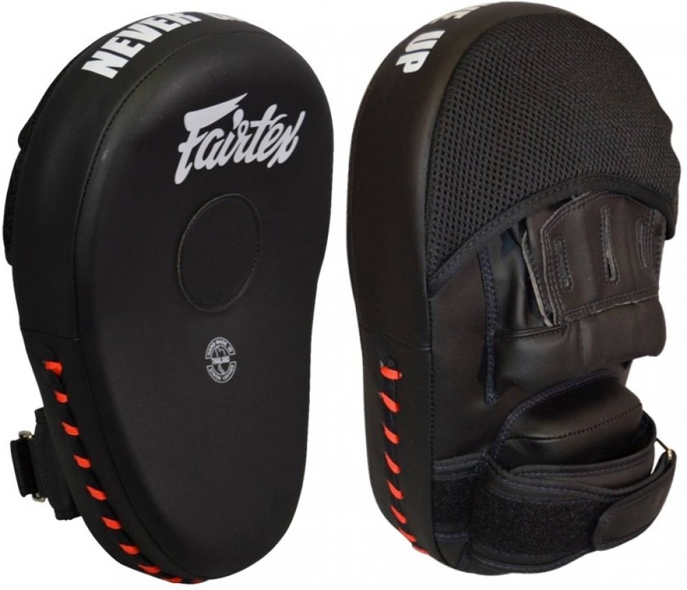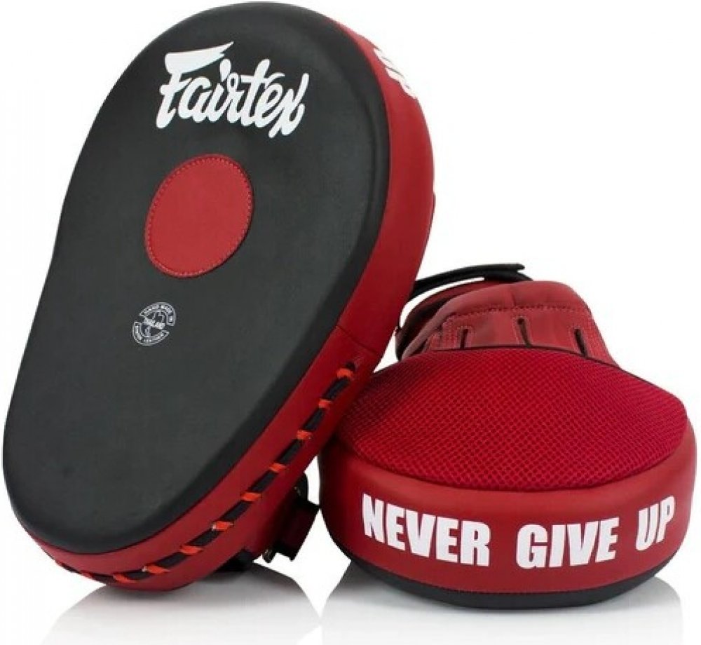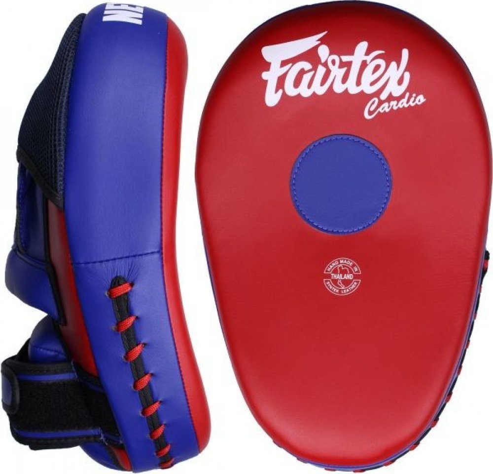 Lapy Fairtex FMV13 - černo červené Lapy Fairtex mají lehce zahnutý tvrdý předek a polstrovaná zadní část chrání vaší ruku. Pásek na dotažení. Nejmodernější pětivrstvé pěnové jádro s vysokou hustotou pro optimalizaci tlumení nárazů a minimalizaci zranění. Atraktivní design ve tvaru slzy o délce 8,5 palců pro nácvik úderů, loktů, kolen a kopání. Prodyšná síťovaná tkanina na potahu ruky uvolňuje teplo a vlhkost.Vyrobeno v Thajsku.Materiál: Kvalitní PU kůže.Kvalita a tradice to je Fairtex.