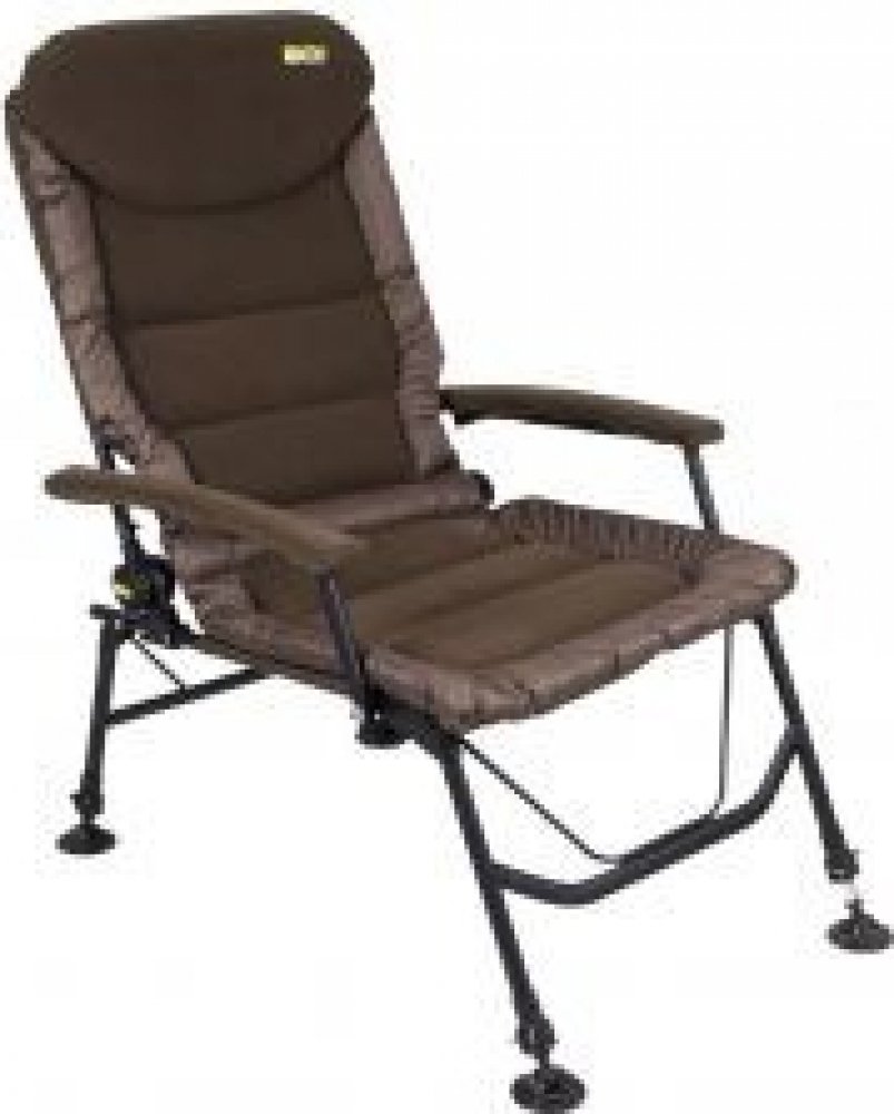 je nastavitelné křeslo s vysokým opěradlem, područkami a nohami vybavenými koncovkami proti zapadávání do měkkého terénu. Křeslo je vyrobeno z lehkého, ale silného odlehčeného kovového rámu. Možnost nastavení opěradla do libovolné polohy zaručí maximální pohodlí pro každého. Flísové područky jsou snadno odnímatelné a dají se prát. S hmotností 6,58kg a transportním rozměrům 70 x 22 x 83cm se křeslo stane vaším oblíbeným společníkem na rybách nebo kempu.