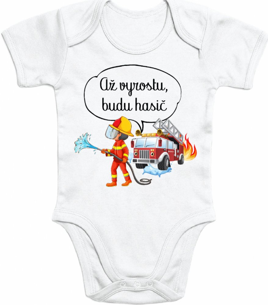 Originální dětské body nejen pro novorozence s potiskem - Až vyrostu, budu hasič. Udělejte radost svým budoucím malým hasičům! Kvalitní dětské body ze 100% bavlny v krásných barevných odstínech. Jedinečný navržený design s barevnou ilustrací jistě upoutá pozornost! Tyto body jsou ideálním dárkem pro každé dítě.