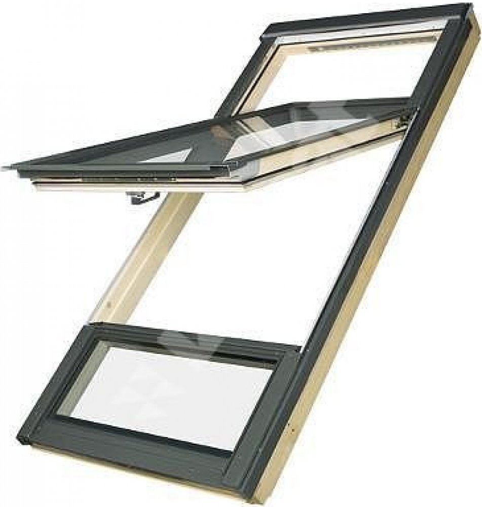Kyvné okno s osou otáčení umístěnou nad středem okna tak, aby se dokonce i vysoká osoba mohla pohodlně dostat ke spodní hraně otevřeného okna. Spodní část křídla (pod osou závěsů) tak vlastně zajišťuje funkci výklopného okna a horní část umožňuje lépe prosvětlit podkroví. Křídlo je při otáčení v úhlu 0-45° přidržováno inovativním podpůrným mechanismem, který dovoluje ponechat otevřené okno v jakékoliv poloze v rozsahu těchto úhlů. Jediná střešní okna na trhu, která po namontování ve střeše se sklonem 39-43° splňují normu DIN 5034-1*. Tato norma stanoví, že dolní hrana okna musí být ve výšce do 95 cm a horní hrana ve výšce minimálně 220 cm měřeno od podlahy.