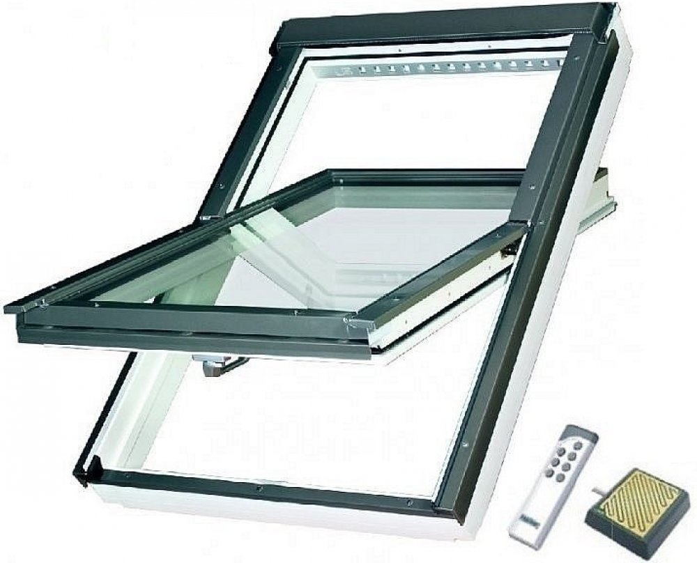 - Kyvná okna továrně vybavená zařízeními (řídicí a motorová jednotka, napájecí transformátor, dálkový ovladač), která umožňují dálkové otevírání a zavírání oken, a také manipulaci s doplňky pomocí dálkového ovladače. Okna jsou zároveň vybavena dešťovým senzorem, který při výskytu srážek zajistí jejich automatické uzavření, a magnetickým kontaktem, který detekuje jejich otevření. Na rámu okna jsou umístěny kontakty umožňující jednoduchou montáž a připojení elektricky ovládaných doplňků.