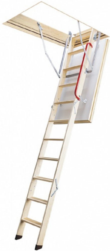 Zateplené super thermoizolační třídílné půdní schody LTK Energy jsou vyrobeny z kvalitního borovicového dřeva. Oproti schodům LWK Komfort se liší výškou rámu, která činí 22 cm a tloušťkou termoizolačního poklopu 6,6 cm. Půdní schody FAKRO LTK představují výtečnou tepelnou bariéru a minimalizují tepelné ztráty v interiéru. Kovové madlo červené barvy je uchyceno k úhelníkům žebříku a tvoří bezpečnostní prvek při výstupu do podkroví. Patky jsou montovány ve spodní části bočnic, přispívají k celkové estetice produktu, zvyšují stabilitu a chrání povrch podlahy. Zámek a ovládací tyč součástí každého balení.