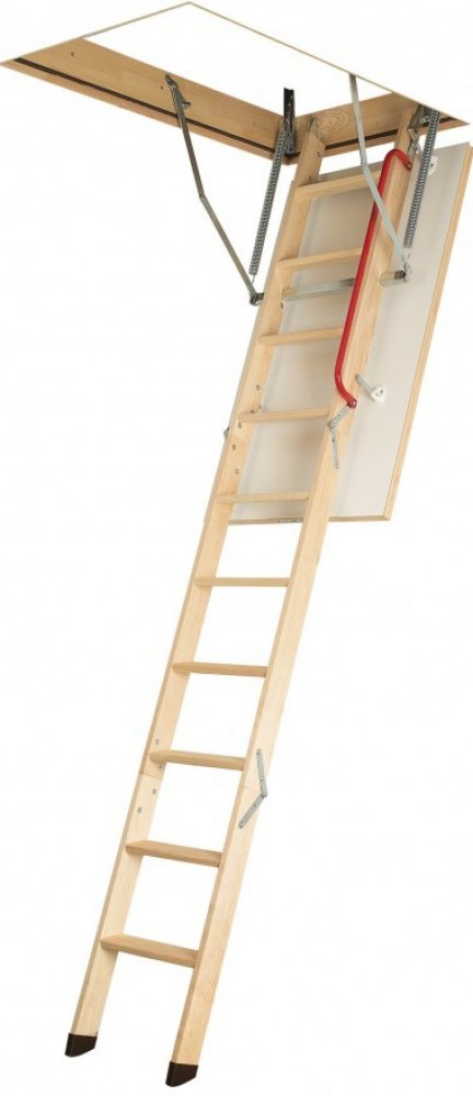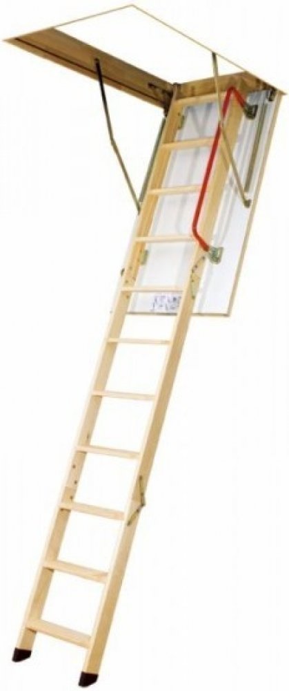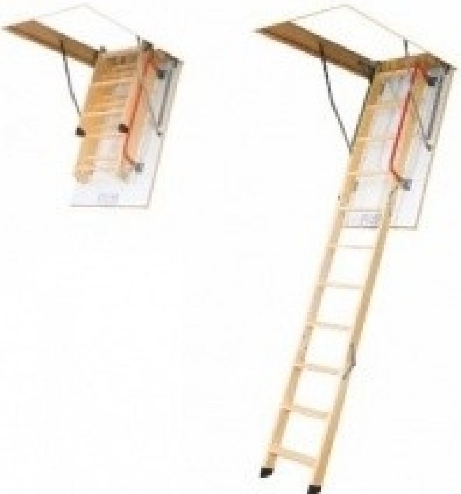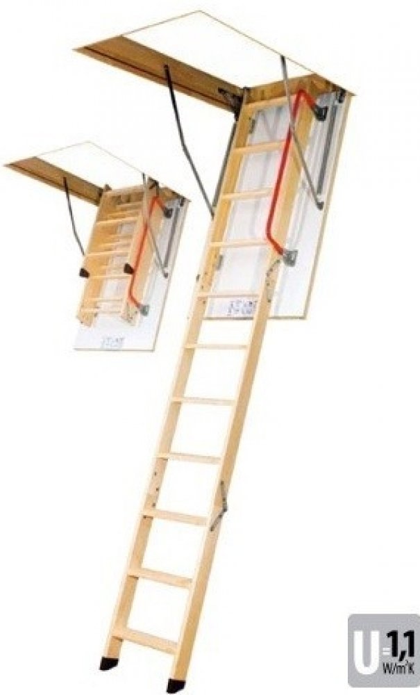 Půdní schody FAKRO typu LWK KOMFORT jsou dřevěné třídílné schody vyrobené z kvalitního borovicového dřeva se zatepleným poklopem z přírodní dřevotřísky polepené oboustranně deskou HDF v bílé barvě, vybavené dodatečným bezpečnostním kovovým mádlem a umělohmotnými ochrannými patkami (u schodů, které mají třídílný žebřík).Meziprostor je vyplněn 30 mm vrstvou polystyrenu. Poklop je zajištěn speciálním zámkem. Příslušenstvím je kovová tyč sloužící pro snadnou manipulaci s poklopem a ovládání zámku.
