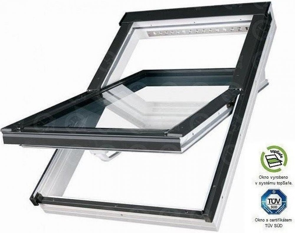 Střešní okno energoúsporné plastové kyvné FAKRO PTP-V U5 114 x118 Střešní plastové kyvné okno FAKRO PTP z plastových profilů PVC je určeno pro podkrovní místnosti se zvýšeným výskytem vzdušné vlhkosti, jakými jsou např. koupelny a kuchyně. Může být rovněž použito v místnostech, kde volba okna v bílém provedení esteticky ladí se vzhledem obytných prostor, popřípadě tam, kde jsou kladeny zvýšené požadavky na nenáročnost údržby. Záruka 10 LET - poskytuje firma Fakro Střešní plastové kyvné okno FAKRO PTP-V je pevné, odolné vůči korozi a měnícím se atmosférickým vlivům. Jeho údržba je omezena na minimum. Materiál, ze kterého je okno vyrobeno, je plně nenasákavý a vyznačuje se vysokou odolnosti vůči působení kyselin nebo rozpouštědel. Střešní kyvná okna FAKRO PTP-V jsou ovládaná pomocí spodní kliky, která je snadno dosažitelná přímo z podlahy. Proto je otevírání oken pohodlné a není k němu potřeba používat žádné další pomůcky. Polohovací konstrukce kliky umožňuje velmi účinnou a zajištěnou ventilaci mezerou mezi okenním křídlem a rámem ( mikroventilace ). Díky speciální konstrukci kování umístěného v polovině výšky okna, můžeme ponechat okenní křídlo v pootevřené poloze. Kování rovněž umožňuje otočení okenního křídla o 180° kolem středové osy a jeho pohodlné mytí i údržbu. V okně je namontovaná ventilační klapka V35 zajištující přísun optimálního množství čerstvého vzduchu do místnosti. Tato ventilační klapka pomáhá udržovat zdravé mikroklima v místnosti a současně přispívá k úsporám tepelné energie. Díky umístění ventilační klapky v horní části okenního rámu má střešní okno FAKRO, oproti jiným střešním oknům podobných rozměrů, o 6% větší prosklenou plochu a umožňuje lepší prosvětlení místnosti. Charakteristika: - okno je vybaveno nízkoenergetickým zasklením U5 Thermo (Uskla=0,6 W/m2K) - vnější tvrzené sklo se selektivně reflexní vrstvou 4 mm (HT) - termo rámeček 10 mm (TGI) - tvrzené sklo 4 mm (H) - termo rámeček 10 mm (TGI) - vnitřní tvrzené sklo se selektivně reflexní vrstvou 4 mm (HT) - plněné Kryptonem - vyrobeno z vícekomorových profilů PVC bílé barvy s vnitřními pozinkovanými ocelovými výztuhami (Uokna = 1,1 W/m2K), - ve verzi PTP-V je okno vybaveno ventilační klapkou V35, - vydatnost ventilační klapky: 16-43 m3/h - okna se ovládají klikou ve spodní části okna a nabízejí možnost dvoupolohového spárového větrání, - montováno spolu s těsnicím lemováním do střech se sklonem od 15° do 90°, - dodatečně může být doplněno pestrou nabídkou vnějších a vnitřních doplňků. Ke střešním oknům je třeba objednat lemování dle typu střešní krytiny - viz. lemování.