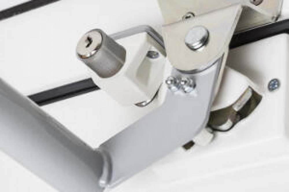 Okenní zámek ZBL zabezpečuje střešní okno proti otevření. Tento estetický zámek bílé barvy se montuje v dolní části okna. Po zasunutí kolíku a otočení klíčkem již nelze okno otevřít. Zámek lze použít u většiny otevíravých střešních oken FAKRO, dřevěných i plastových, bez ohledu na jejich velikost.