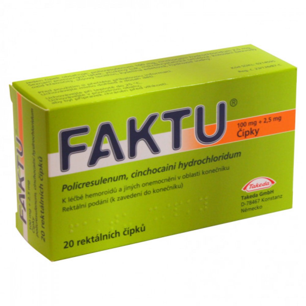 Léčivou látkou přípravků Faktu mast a Faktu čípky je polykresulen a cinchokain. Přípravek Faktu rychle zastavuje krvácení, svědění a pálení při hemoroidech a dalších obtížích v oblasti konečníku. Zabraňuje vzniku zánětu a podporuje regeneraci postižené oblasti. Cinchokain způsobuje místní znecitlivění, čímž snižuje bolest a svědění v oblasti konečníku.