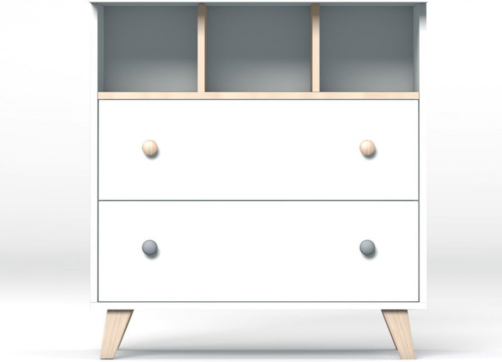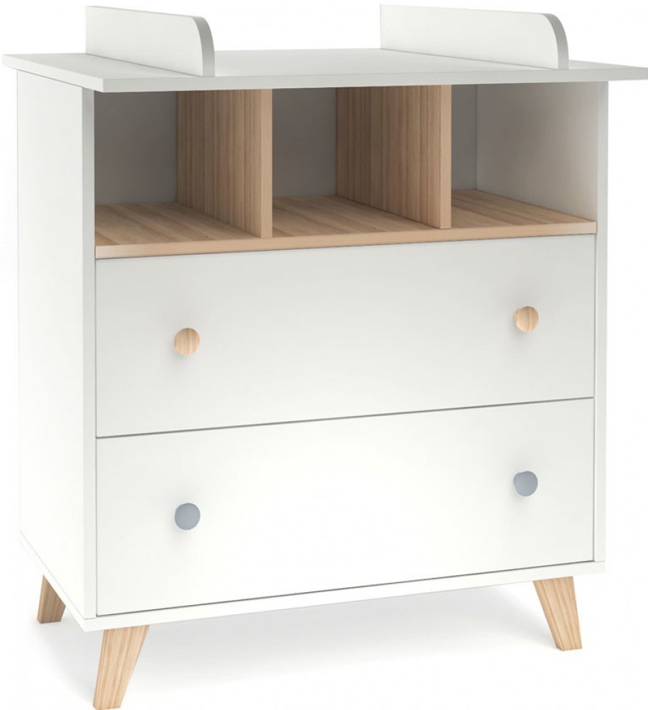 Přebalovací komoda Faktum COLETTE White poskytne dostatek místa na vše potřebné pro Vaše miminko. V horní části je otevřená polička pro velmi frekventované potřeby, níže jsou dva šuplíky. Komoda je optimálně vysoká pro pohodlné přebalování. Součástí dodávky je přebalovací nástavec, který později můžete odmontovat a komodu dále používat bez něj.