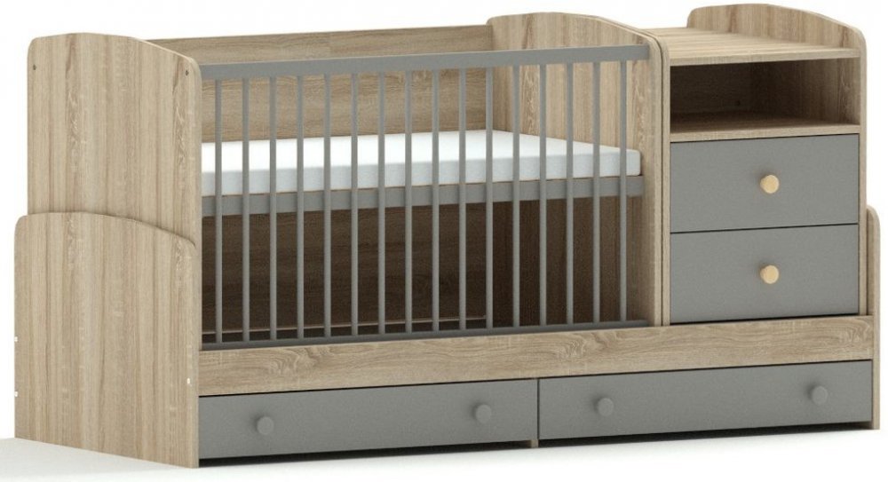 I když se na první pohled zdá být kombi postel robustní, opak je pravdou. Vždyť na 2 metrech máte vše, co jindy zabírá mnohem více prostoru – postýlku i přebalovací komodu. Toto řešení doporučujeme pro menší dětské pokoje. Univerzálnost sestavy tkví v její rozložitelnosti na jednotlivé kusy nábytku.