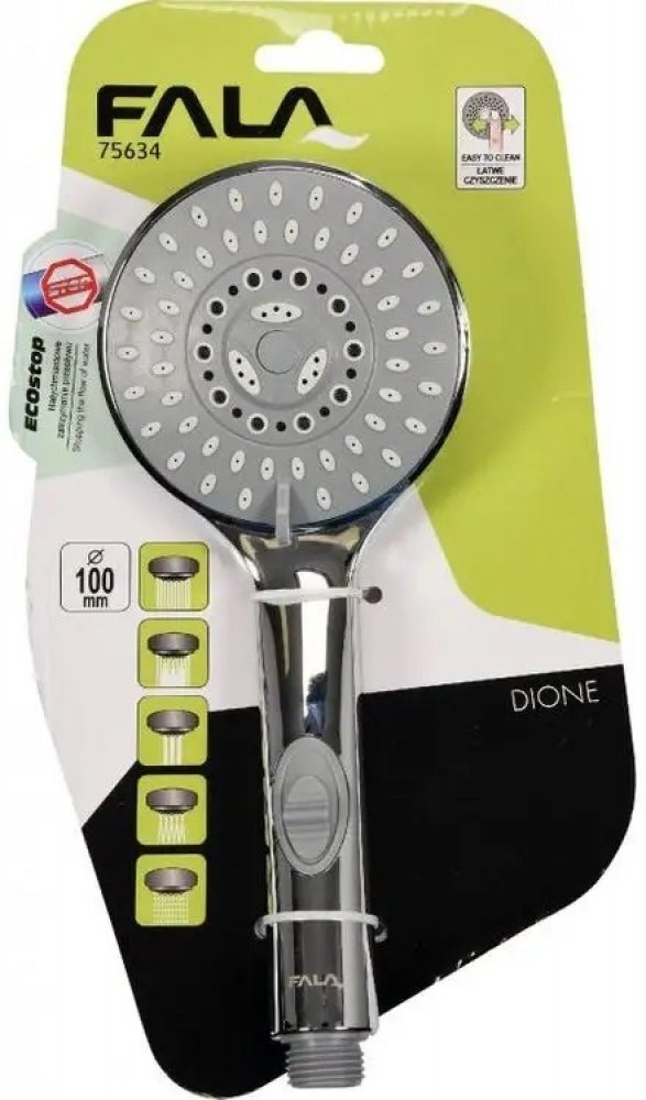 Technická data Průměr hlavice 105 mm Závit 1/2" Materiál ABS Barva leštěný chrom Počet funkcí 5 + ECO stop