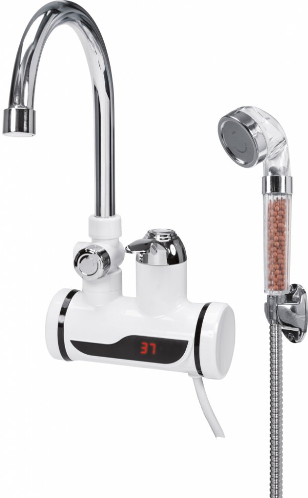 Průtokový ohřívač o výkonu 3000W, umožňuje ohřát vodu na 60 ° C za 5 sekund. Snadno čitelný LED displej, který umožňuje kontrolovat teplotu vody.