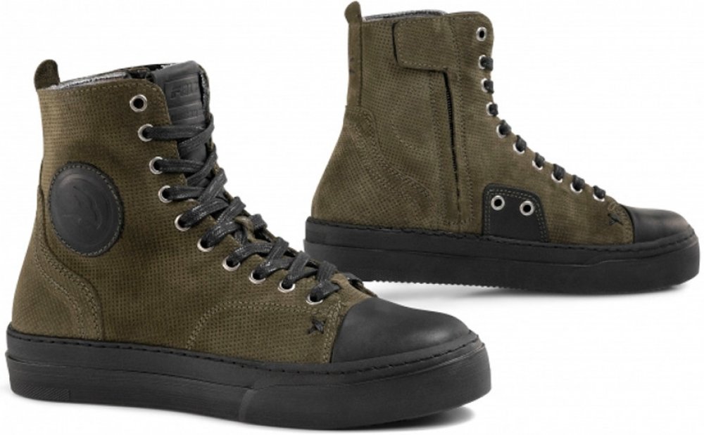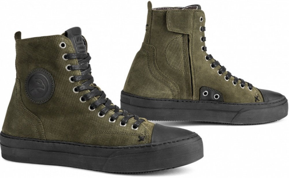 Nízké letní cestovní moto boty Falco Lennox AIR z broušené a perforované kůže a vnitřní AIR-Tech podšívkou pro maximální přívod vzduchu k noze jezdce. Zpevněné oblasti prstů a paty. Pěnový D3O chránič kotníků. Zapínání na tkaničky a tepelně potištěné místo pro řadičku. Vulkanizovaná pryžová podrážka pro lepší komfort a maximální gryp.