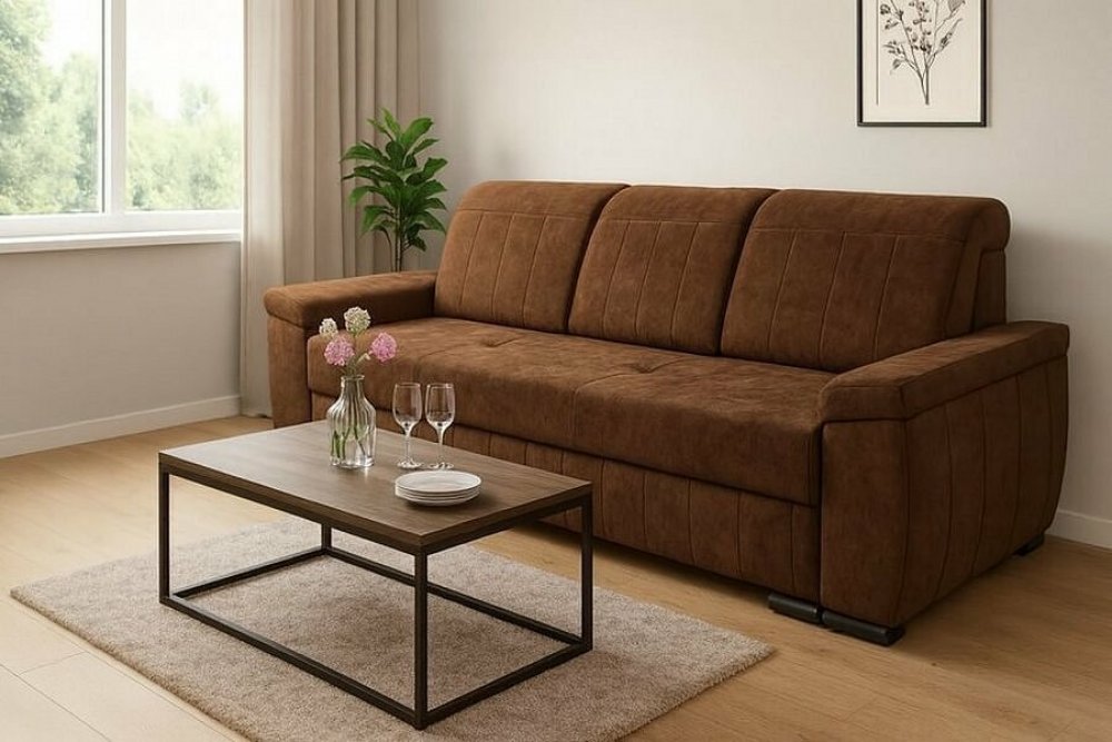 Falco rozkládací trojmístné látkové s úložným prostorem hnědé moderní 94 cm 48 cm 235 cm