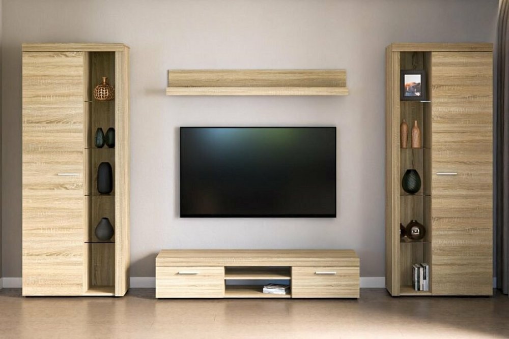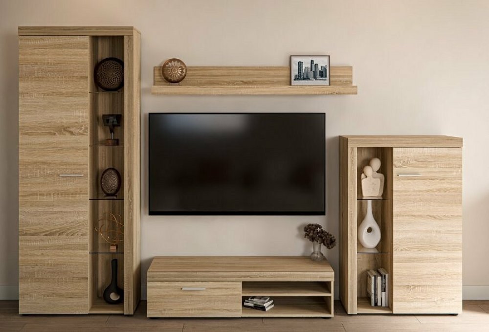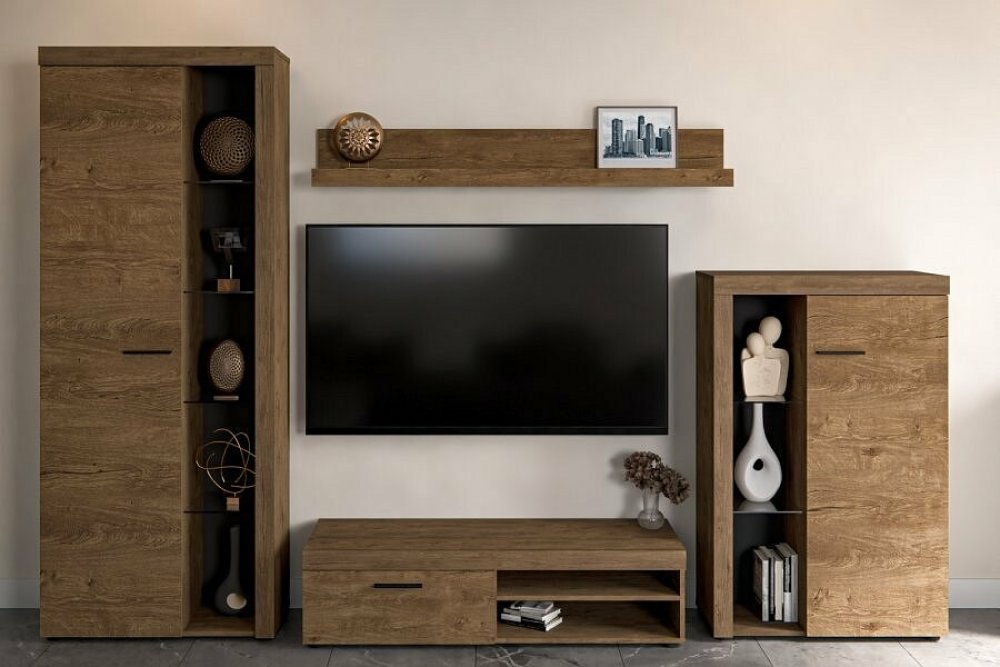 Obývací stěna Rizo patří mezi oblíbené modely moderního nábytku. Nabízí dostatek úložného prostoru a je vhodná i do menších pokojů. Stěna je vyrobena z lamina, které je odolné a snadné na údržbu. Ke stěně nabízíme i několik typů komod ve stejném provedení. Všechny prvky této sestavy jsou dodávány v demontu. Součástí je montážní plánek včetně všech potřebných spojovacích materiálů. Cena je uvedena za bytovou stěnu vyobrazenou na úvodní fotografii, bez komod, doplňků a dekorací. LED osvětlení není v ceně sestavy.