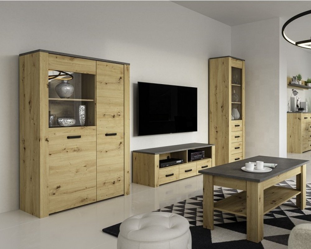 K obývací stěně Rizo XL lze dokoupit komody ve stejném designu pro ještě větší úložný prostor a jednotný vzhled interiéru.