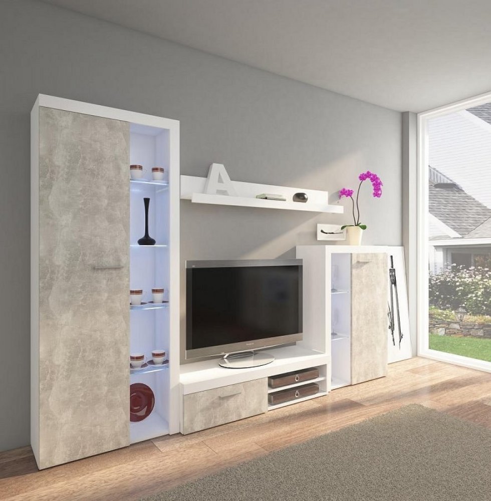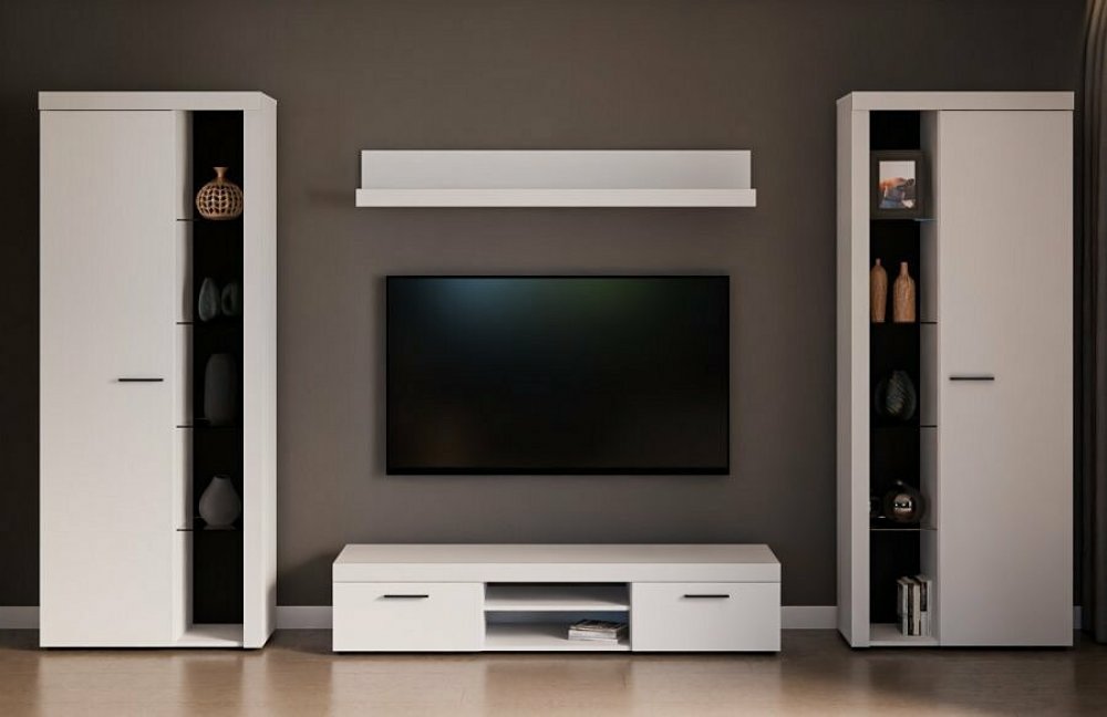 Obývací stěna Rizo XL bílá nabízí dostatek úložného prostoru i do menších místností. Je ideální pro uspořádání knih, dekorací a elektroniky v moderním stylu.