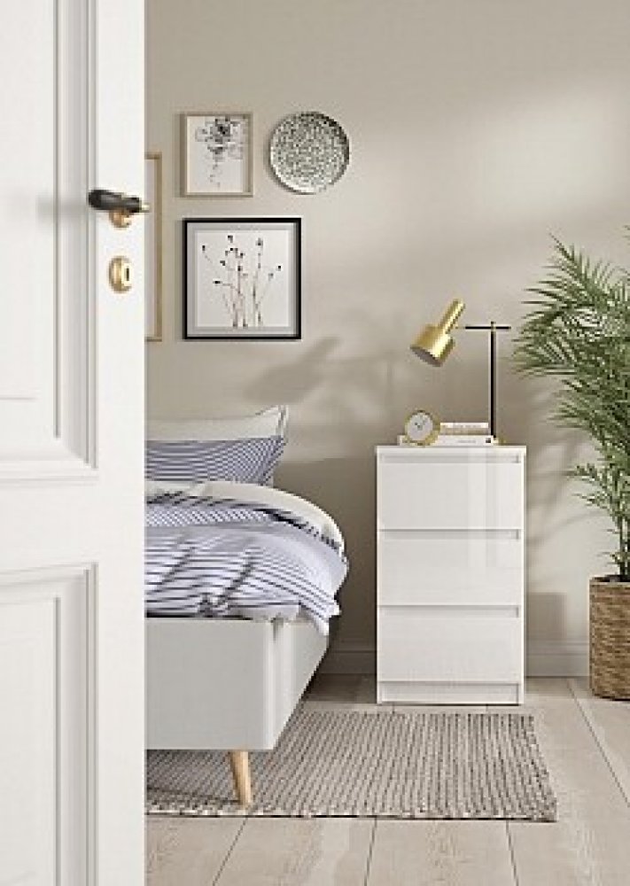 Moderní vzhled komody bez viditelných úchytek snadno zapadne do různých interiérů a dodá jim čistý a elegantní styl.