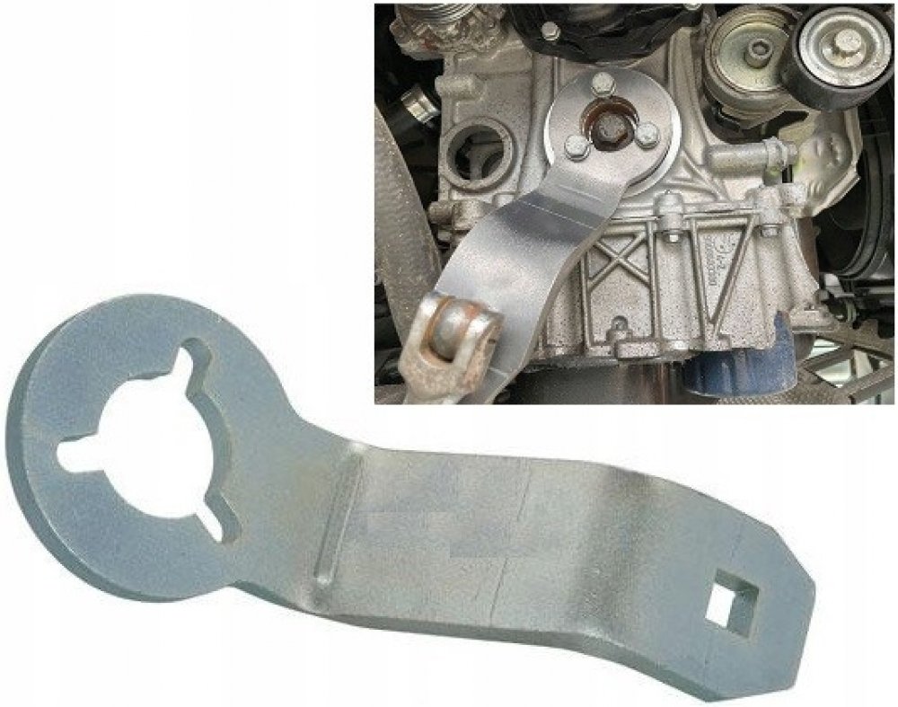 Tento robustní přípravek je nezbytnou pomůckou pro každého mechanika servisujícího moderní tříválcové motory koncernu Stellantis (PSA). Na rozdíl od běžných aretačních kolíků, které slouží pouze k nastavení polohy, tento nástroj slouží jako silový držák. Umožňuje bezpečné povolování a utahování centrálního šroubu klikové hřídele, který bývá dotažen velmi vysokým momentem.