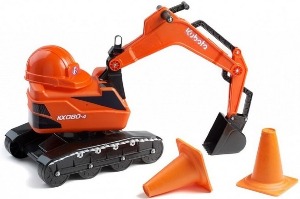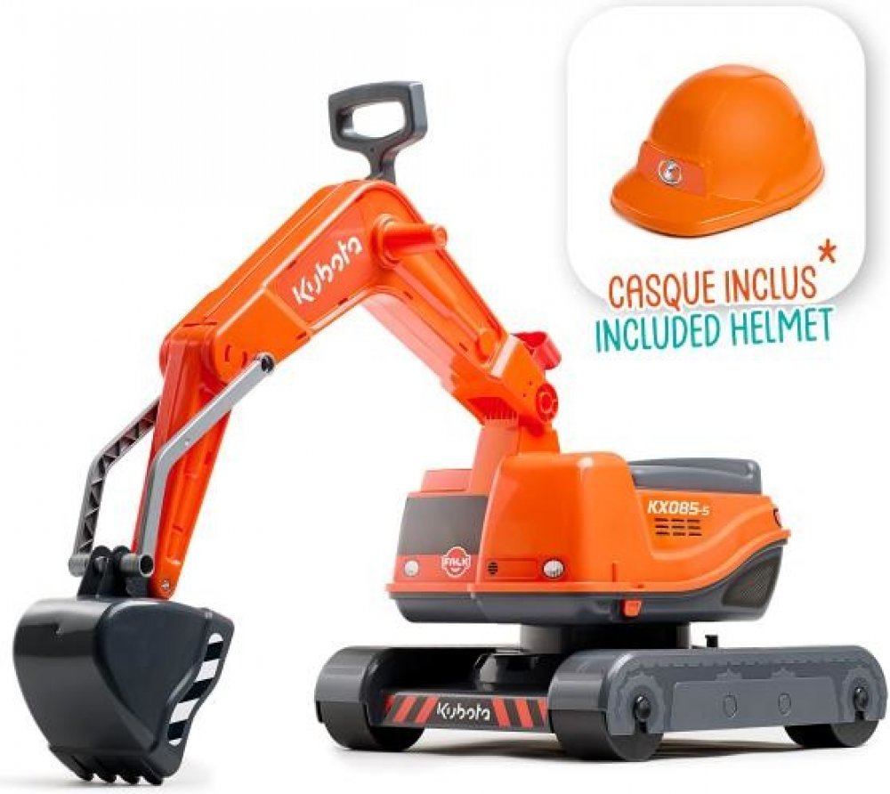 FALK Odrážedlo bagr KUBOTA s odklopným sedadlem a přilbou - oranžové. FALK Odrážedlo bagr KUBOTA v živé oranžové barvě je snem každého malého stavitele. Tento realistický bagr je vybaven odklopným sedadlem pro snadný přístup k úložnému prostoru a přilbou pro zvýšení bezpečnosti při hře. Robustní konstrukce a pohyblivé části poskytují autentický