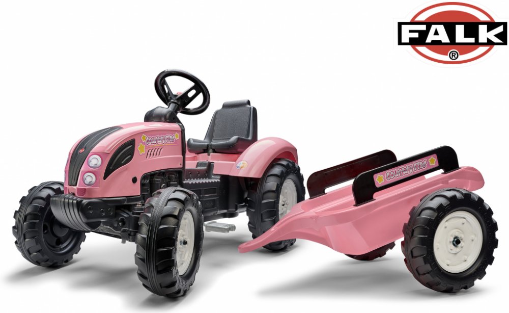 Šlapací traktor Country Star v růžové barvě s přívěsem od výrobce FALK je snem každého malého traktoristy. Pečlivě vyrobeno, s důrazem na nejmenší detail, určeno pro děti od 2 let. Vozidlo je vybaveno odnímatelným přívěsem s panely a volantem s klaksonem.