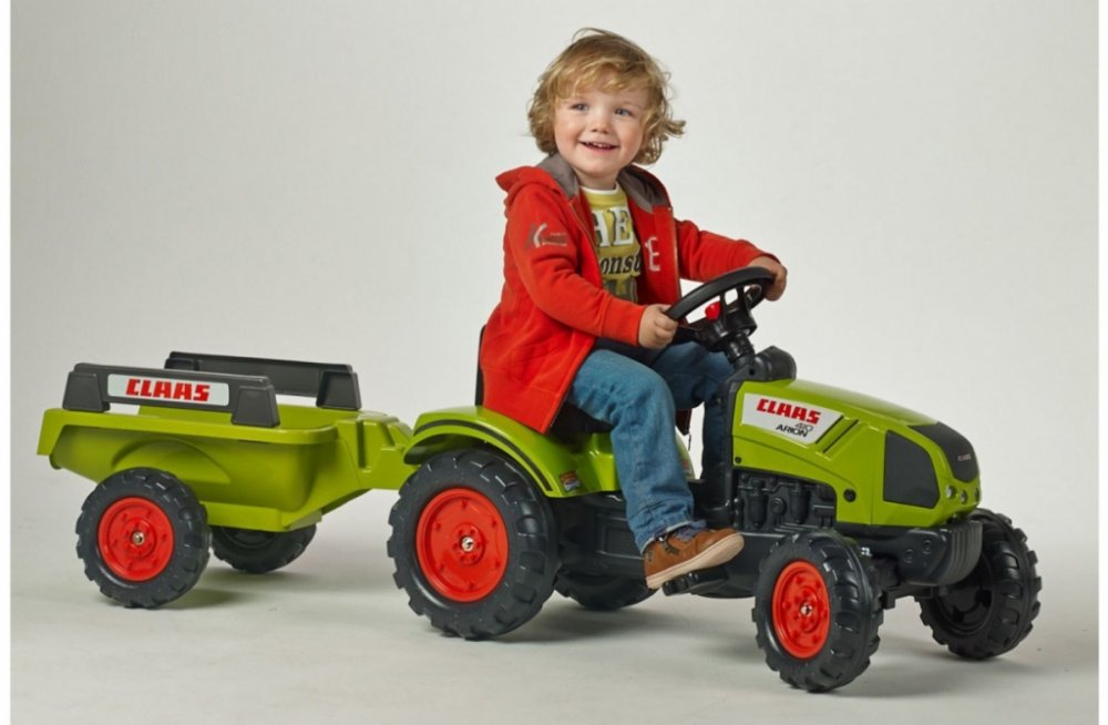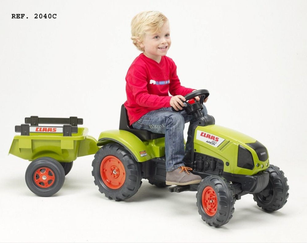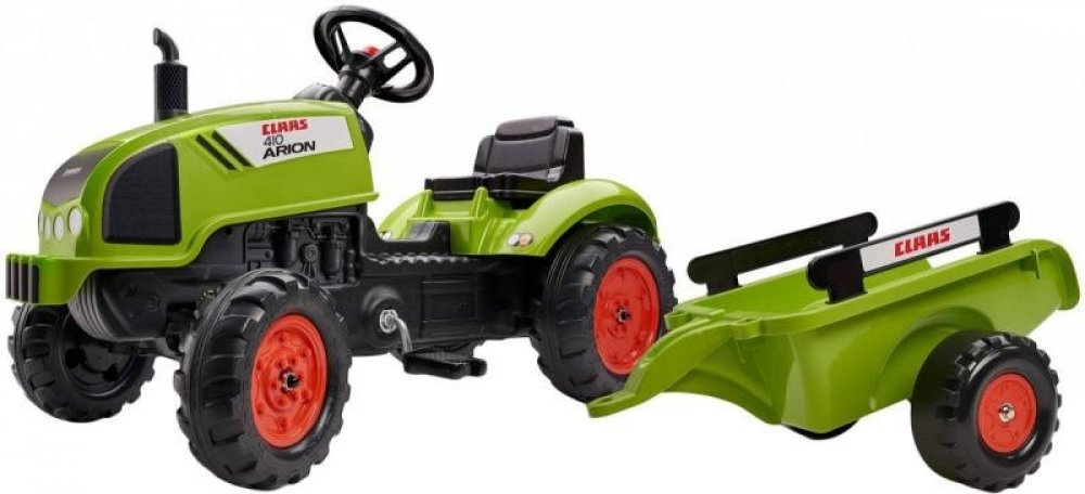 Dětský šlapací traktor Claas Arion 410. Součástí vlečka, odklápěcí kapota, komín, volant a funkční klakson. Vysoce odolný a kvalitní plast.