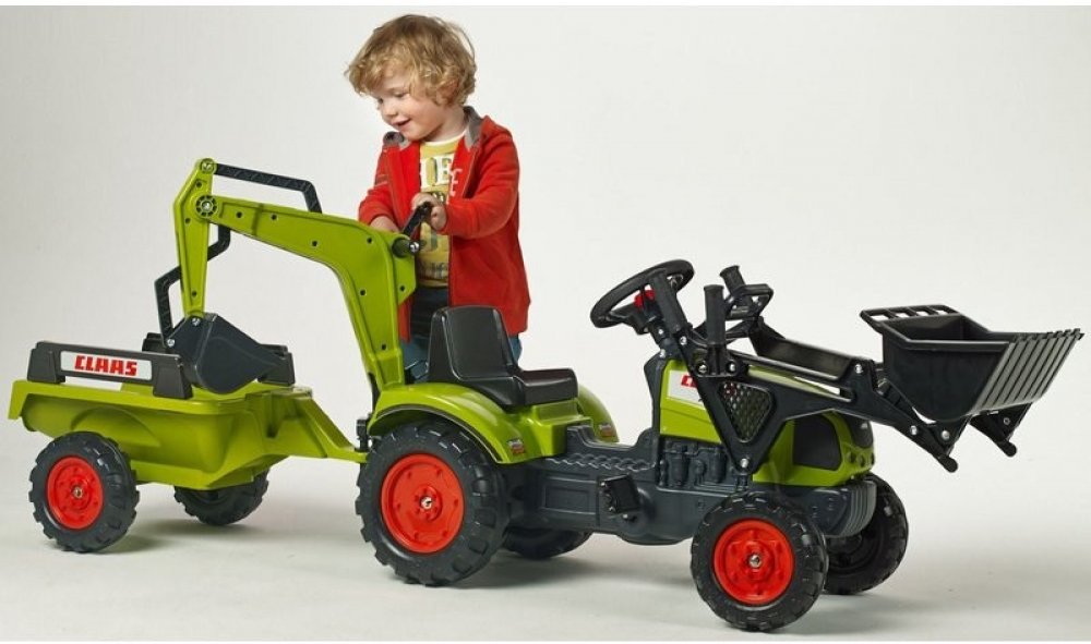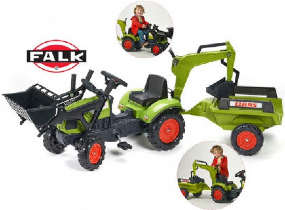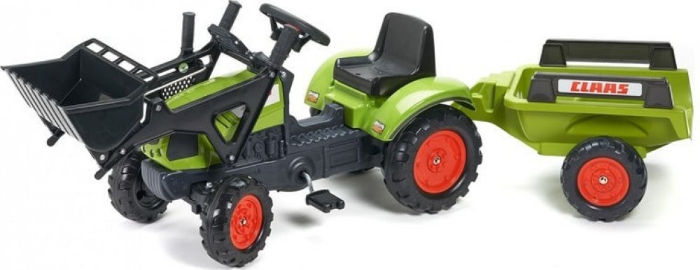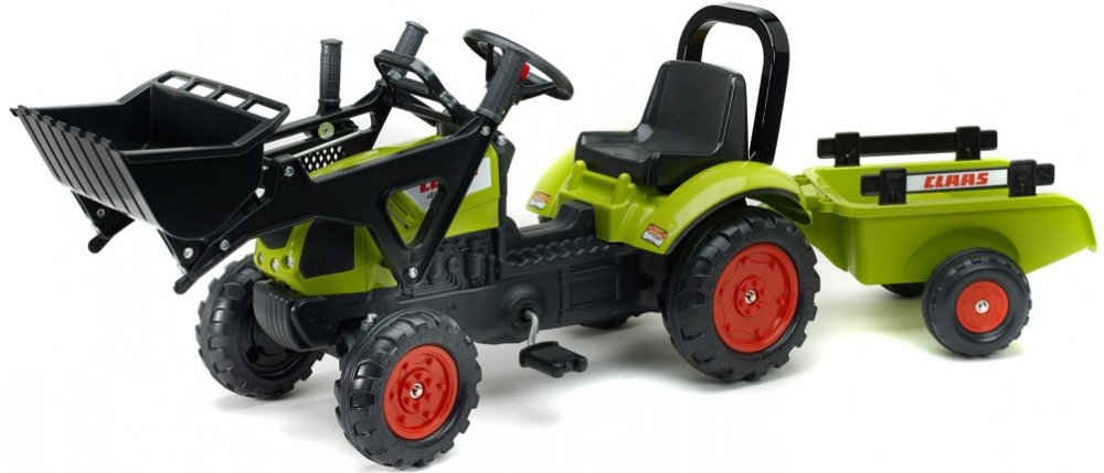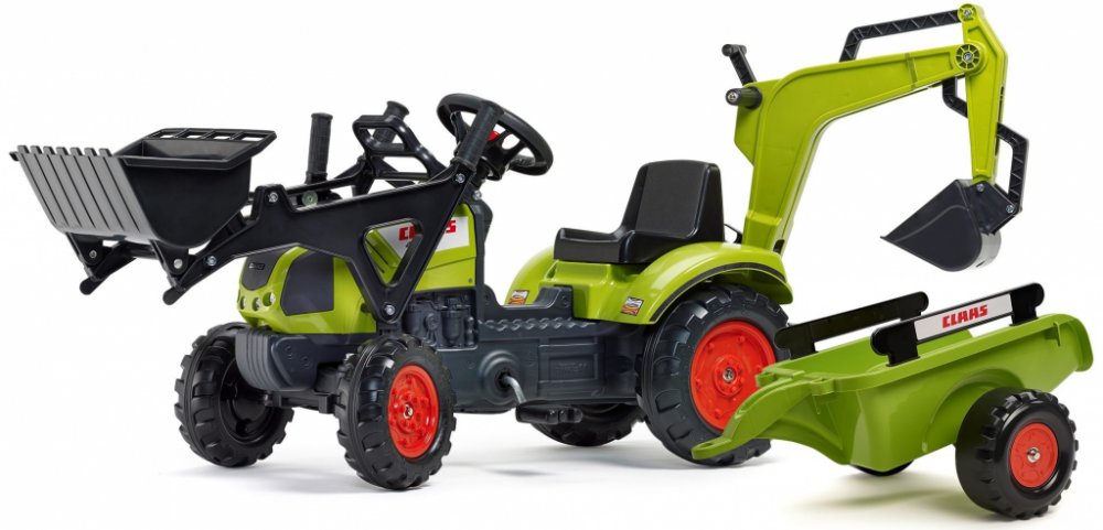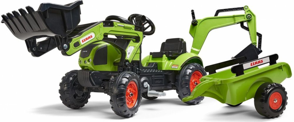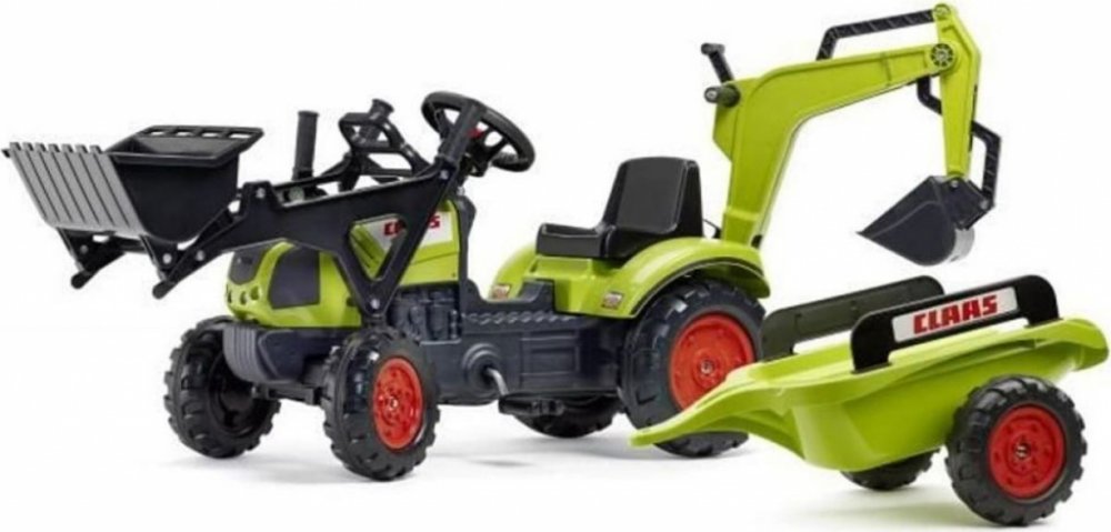 FALK Šlapací traktor Claas Arion 410 s nakladačem rypadlem a vlečkou