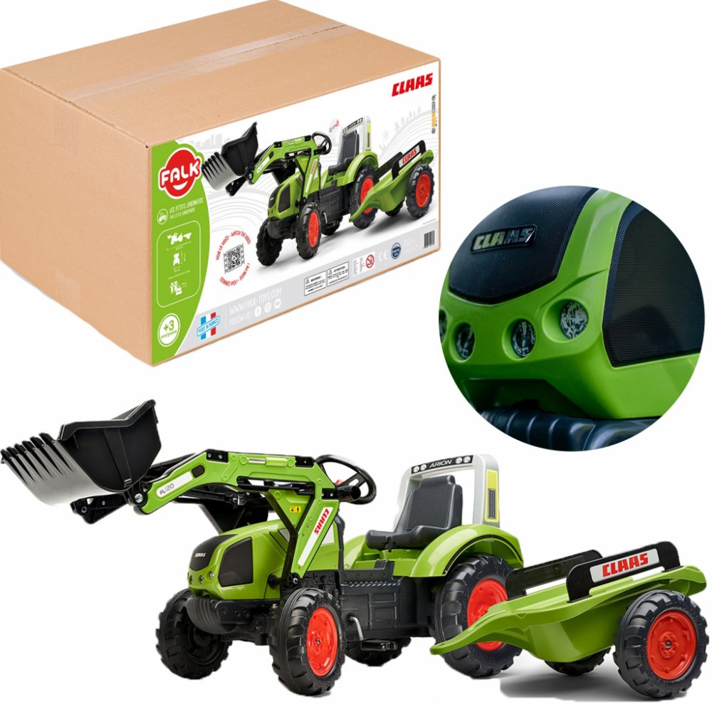 FALK Šlapací traktor Claas Arion 430 s nakladačem a vlečkou
