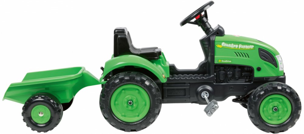 Charakteristika Šlapací traktor FALK Green s vlečkou od Francouzského výrobce. Realistická kopie traktoru. Vybavený odpojitelnou vlečkou a funkčním klaksonem na volantu. Vyrobeno z odolného plastu s ohledem na bezpečnost dětí. Vhodné pro děti od 2 do 5 let. Funkční klakson Volant je osazen funkčním klaksonem, který dá vždy vědět, že se šlapací traktor s malým traktoristou blíží. Odpojitelná vlečka Šlapací traktor s vlečku, kterou lze snadno odpojit a připojit kdykoliv budete chtít, si zamiluje každé dítě. Oje vlečky je k traktoru připojeno pomocí aretačního kolík, který se jednoduše vysune. Vhodné pro děti od 2-5 let Francouzská společnost FALK se důrazně zaměřuje na kvalitu a bezpečnost svých výrobků, proto jsou všechny její produkty důkladně testovány, aby byly vhodné i pro malé děti. Nosnost Všechny dětské traktory Falk jsou testovány na 30kg – dle požadavků EU norem. Společnost FALK Společnost Falk (FALQUET) se specializuje na výrobu outdoorový hraček. Portfolio značky zahrnuje imitace traktorů, čtyřkolek, motorek, tříkolek a dalších vozítek. Naleznete zde hračky pro děti od 1 do 7 let. Společnost se vyznačuje velmi kvalitním a detailním zpracováním výrobků. Francouzská společnost FALK vznikla v roce 1947. Sídlo společnosti je v Oyonnaxu (Francie). Od počátku 70. let je sortiment zaměřen na výrobu plastových hraček. V současné době je společnost předním evropským výrobcem outdoorových hraček. Vyrobeno ve Francii Všechny produkty značky jsou vyrobeny ve Francii a májí veškeré bezpečností certifikáty. K výrobě je použit zejména polyethylen a polypropylen s vysokou pevností a stálostí. Vlastnosti Vyrobeno z kvalitního plastu Snadno ovladatelný a stabilní Pohon zadního kola Klakson na volantu Odpojitelná vlečka Pro děti od 2 do 5 let Délka 123 cm Šířka 42 cm Výška 53 cm Nosnost 30 kg Hmotnost 6.5 kg Doporučený věk 2 - 5 let