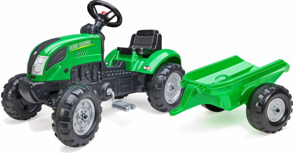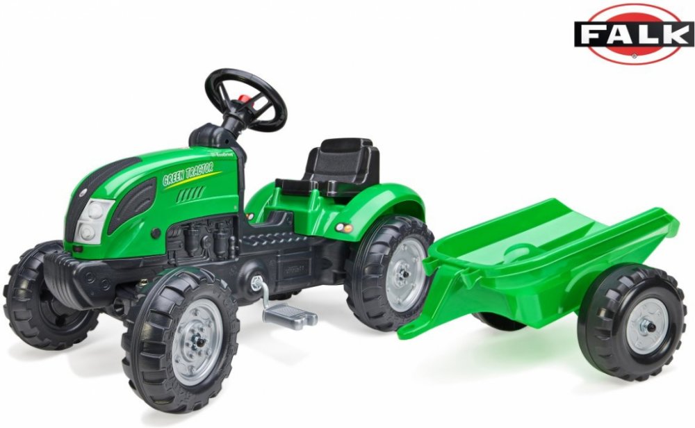 Charakteristika Šlapací traktor FALK Green s vlečkou od Francouzského výrobce. Realistická kopie traktoru. Vybavený odpojitelnou vlečkou a funkčním klaksonem na volantu. Vyrobeno z odolného plastu s ohledem na bezpečnost dětí. Vhodné pro děti od 2 do 5 let. Funkční klakson Volant je osazen funkčním klaksonem, který dá vždy vědět, že se šlapací traktor s malým traktoristou blíží. Odpojitelná vlečka...