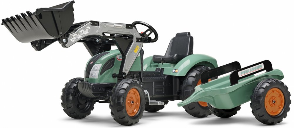 Falk šlapací traktor SUPER LOADER 1054AM s nakladačem a přívěsem - zelený , výrobce FALK. Realistická kopie traktoru. Francouzská společnost Falk představuje vynikající traktor pro děti. Má autentický design a je jako skutečný. Traktor je vybaven nakladačem, velkým přívěsem a pedály. Traktorový přívěs se připojuje k podvozku pomocí upevňovacího šroubu, který lze velmi jednoduše demontovat. Aby byl...