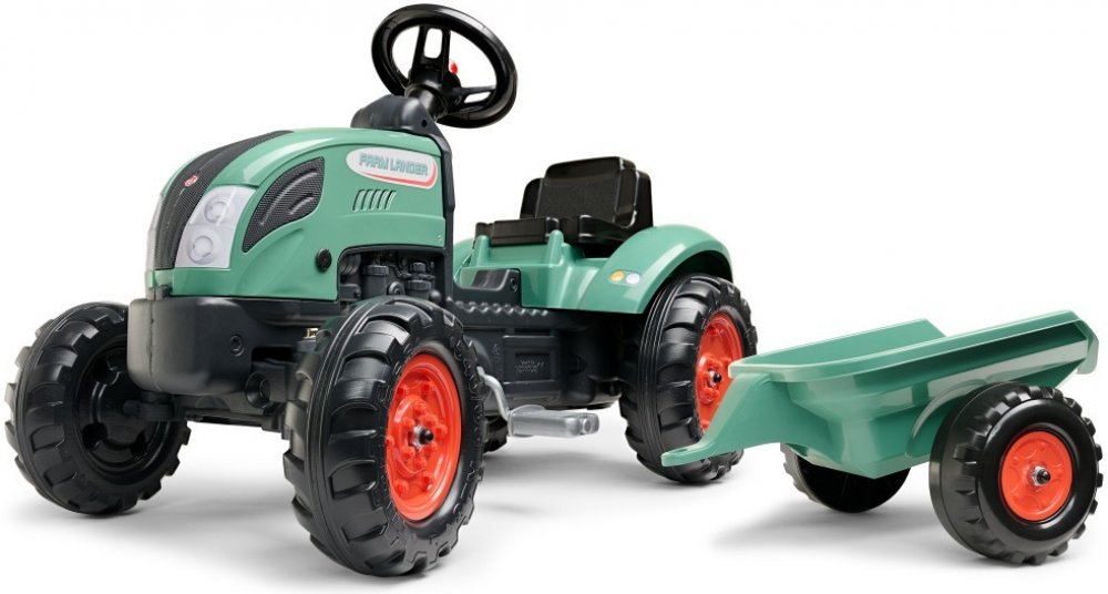 Falk šlapací traktor SUPER LOADER 1054AM s nakladačem a přívěsem - zelený , výrobce FALK. Realistická kopie traktoru. Francouzská společnost Falk představuje vynikající traktor pro děti. Má autentický design a je jako skutečný. Traktor je vybaven nakladačem, velkým přívěsem a pedály. Traktorový přívěs se připojuje k podvozku pomocí upevňovacího šroubu, který lze velmi jednoduše demontovat. Aby byla hra ještě zábavnější, je traktor vybaven i klaksonem. Kolečka jsou dostatečně široká, aby zajistila dokonalou stabilitu při pohybu. Vůz je vyroben z kvalitního plastu, lakován bezpečnými barvami pro děti, S klaksonem na volantu, S vlečkou a nakladačem, Rozměry produktu: 203 x 53 x 70 cm, Váha produktu: 15,5 kg, Nosnost: 30 kg. Pro děti od 3 do 7 let.