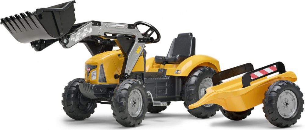 Falk šlapací traktor SUPER LOADER 2054AM s nakladačem a přívěsem - žlutý , výrobce FALK. Realistická kopie traktoru. Francouzská společnost Falk představuje vynikající traktor pro děti. Má autentický design a je jako skutečný. Traktor je vybaven nakladačem, velkým přívěsem a pedály. Traktorový přívěs se připojuje k podvozku pomocí upevňovacího šroubu, který lze velmi jednoduše demontovat. Aby byla hra ještě zábavnější, je traktor vybaven i klaksonem. Kolečka jsou dostatečně široká, aby zajistila dokonalou stabilitu při pohybu. Vůz je vyroben z kvalitního plastu, lakován bezpečnými barvami pro děti, S klaksonem na volantu, S vlečkou a nakladačem,