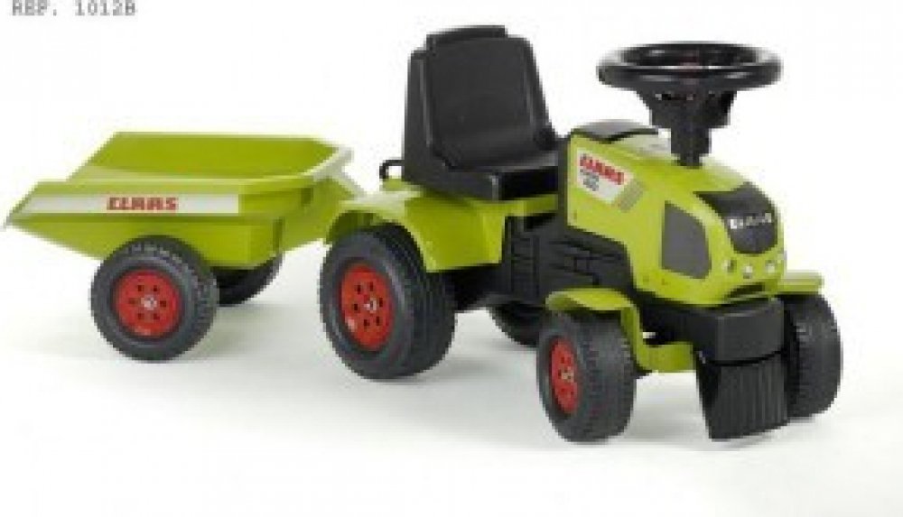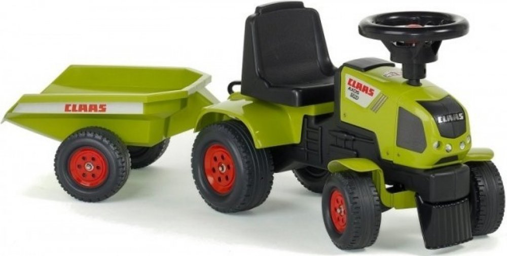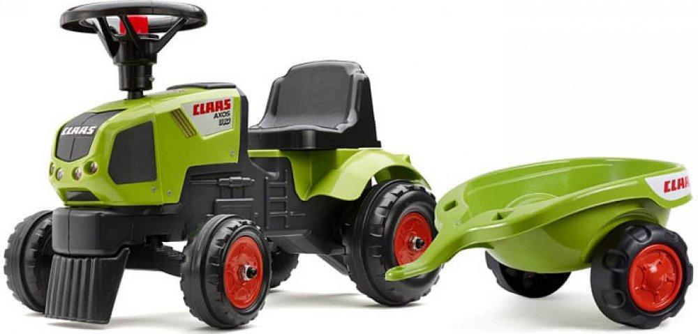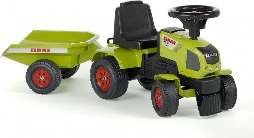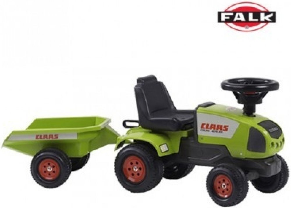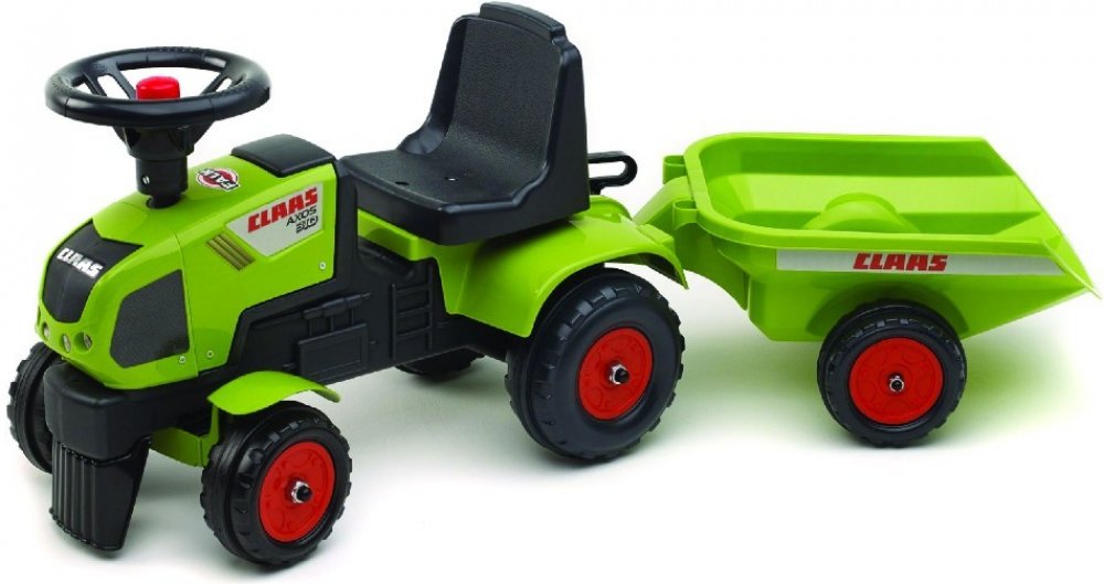 FALK Odrážedlo 1012B Traktor Class s volantem a valníkem. Falk odrážedlo 1012B Baby Claas Axos s vlečkou. Realistická kopie známé značky traktoru z plastu. Vyrobeno ve Francii z vysoce kvalitního odolného plastu s ohledem na bezpečnost dětí
