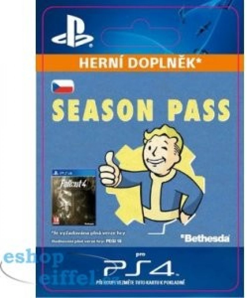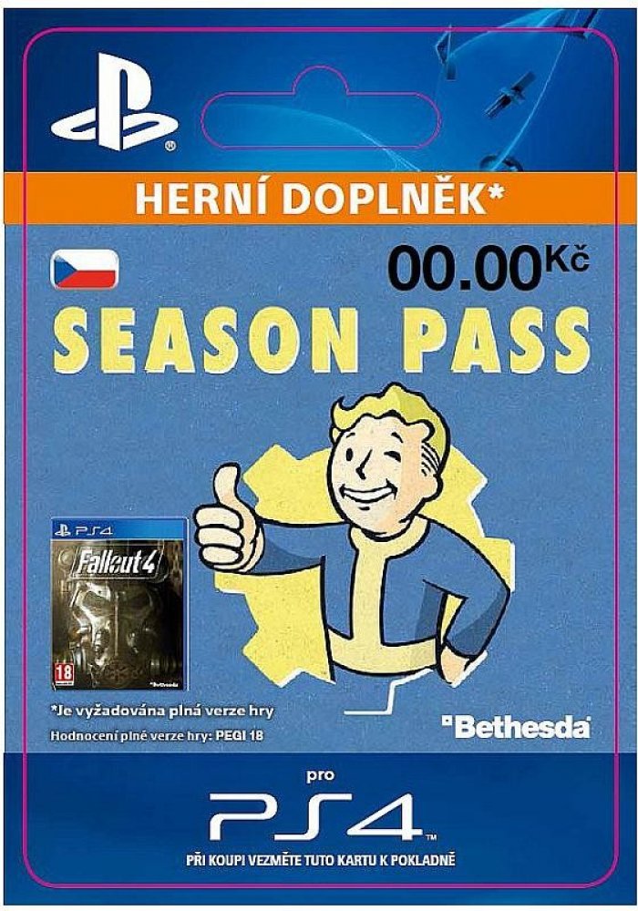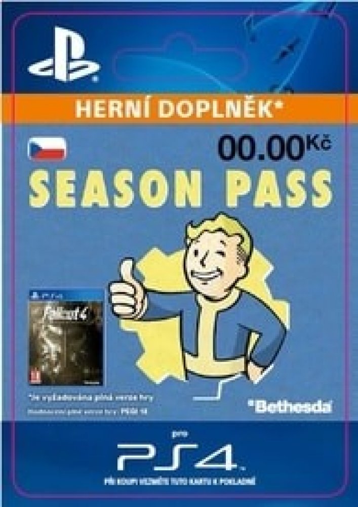 Aktivační klíč je možné použít pouze s PlayStation Network účtem, nastaveným na český (CZ) region. Aktivační klíč s jiným regionem Vám na konzoli nebude fungovat!Jedná se o doplněk ke hře a je nutné vlastnit základní hru v platformě Playstation!FALLOUT®4: SEASON PASS With the Fallout 4 Season Pass, get access to all future downloadable content for one S.P.E.C.I.A.L. price. One-time licence fee to download to multiple PS4 systems. Sign in to PSN is not required to use this on