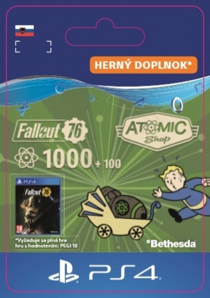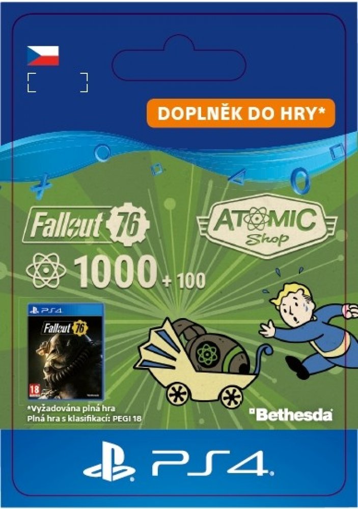 Aktivační klíč je možné použít pouze s PlayStation Network účtem, nastaveným na český (CZ) region. Aktivační klíč s jiným regionem Vám na konzoli nebude fungovat!Jedná se o doplněk ke hře a je nutné vlastnit základní hru v platformě Playstation!FALLOUT 76®: 1000 ATOMS Vyžadována plná hra