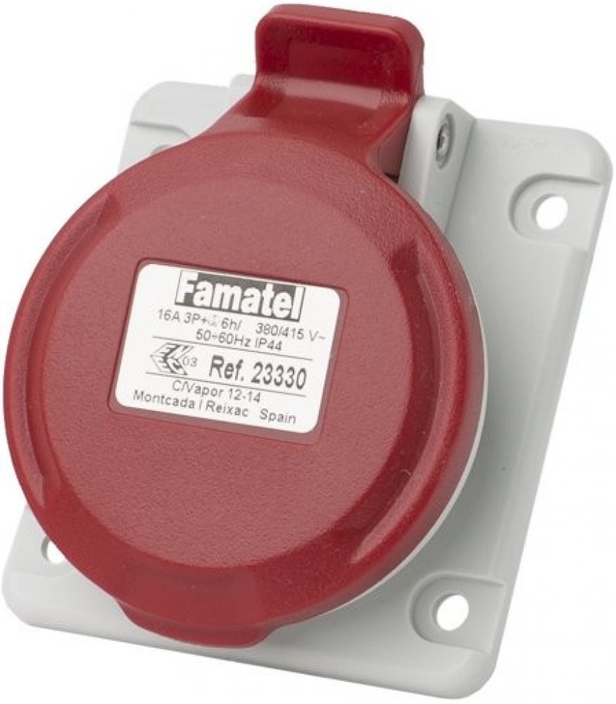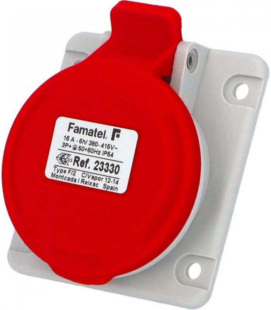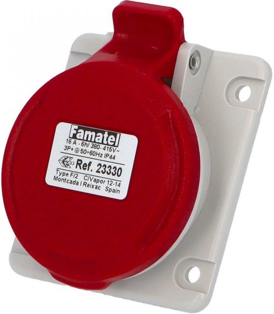 Průmyslové vidlice, zásuvky a spojky SpeedPRO splňující požadavky norem IEC 60309.Široký sortiment zásuvek a vidlic od 16 A do 125 A byl navržen a vyroben podle nejnáročnějších norem kvality a vyhovuje i těm nejvyšším požadavkům na vodotěsnost, odolnost proti teplotním vlivům a nárazům.Optimální ergonomie - Speciální povrchová úprava zaručuje optimální přilnavost při manipulaci a navíc je zjednodušeno samotné otvírání víčka - vše díky promyšlenému ergonomickému designu.Preciznost - Nerezová bezpečnostní spona chrání vidlici / spojku proti otevření vnitřní části, zároveň zaručuje rychlé otevření a zavření při instalaci kabelu.Šroubová vývodka - Exkluzivní inovovaná kabelová šroubová vývodka s antivibračním systémem uchycení kabelu poskytuje maximální trvanlivost spoje a pohodlnou údržbu.Připojení vodičů - V produktové řadě SpeedPRO jsou všechny šroubky přístupné z jedné strany, není nutné otáčet vidlicí/spojkou během instalace.Snadná montáž - Konstrukce vidlic a spojek umožňuje umístění optimálně dle potřeb instalace díky vestavěným závěsům.Univerzálnost - Konstrukce vidlic a zásuvek je vhodná pro všechny typy aplikací a použití v extrémních podmínkách (vlhkost, prašnost, mastnota,...).Zásuvka vestavná 23330 IP54/400V/16A/4P 6h, šikmá 10°.