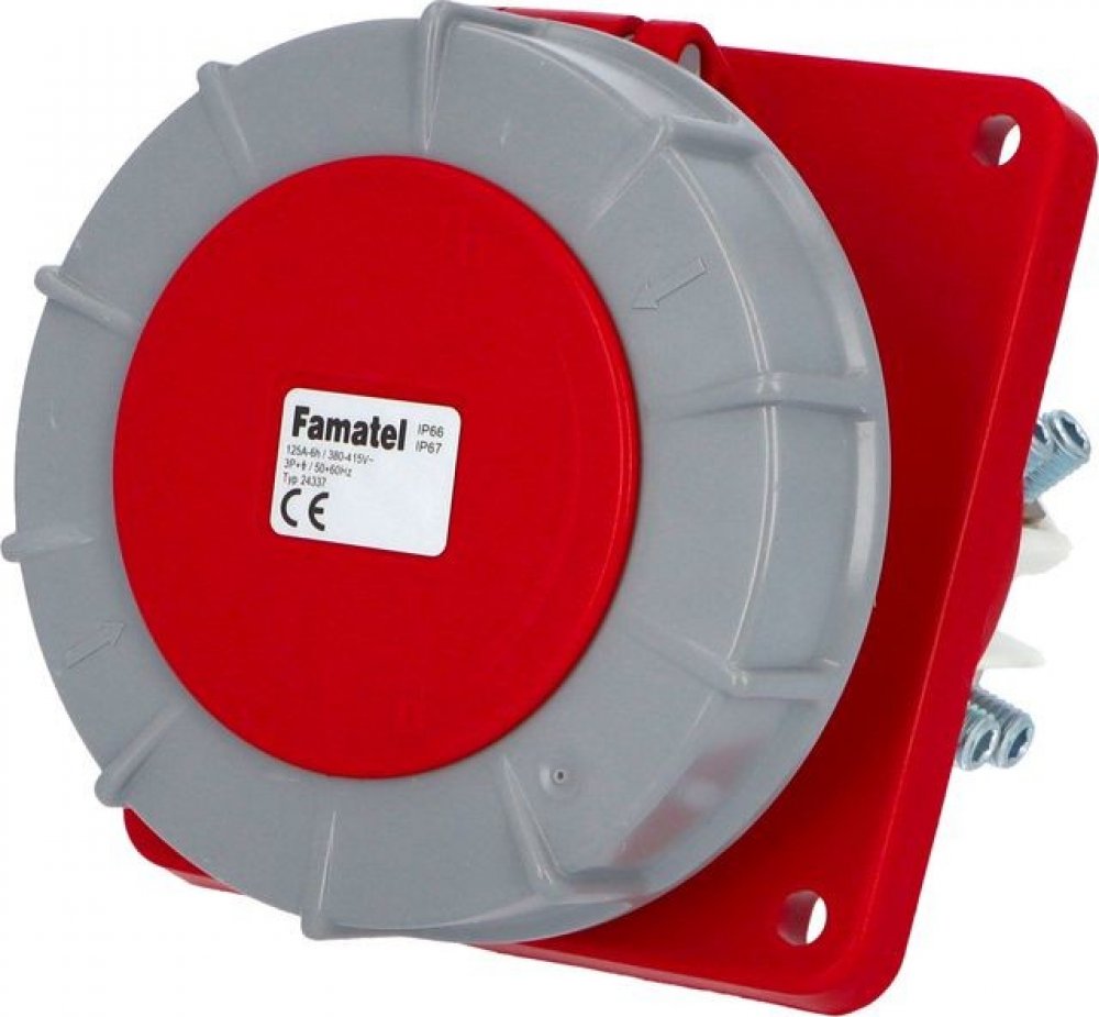 Průmyslové vidlice, zásuvky a spojky splňující požadavky norem IEC 60309.Široký sortiment zásuvek a vidlic od 16 A do 125 A byl navržen a vyroben podle nejnáročnějších norem kvality a vyhovuje i těm nejvyšším požadavkům na vodotěsnost, odolnost proti teplotním vlivům a nárazům.Optimální ergonomie - Speciální povrchová úprava zaručuje optimální přilnavost při manipulaci a navíc je zjednodušeno samotné otvírání víčka - vše díky promyšlenému ergonomickému designu.Preciznost - Nerezová bezpečnostní spona chrání vidlici / spojku proti otevření vnitřní části, zároveň zaručuje rychlé otevření a zavření při instalaci kabelu.Šroubová vývodka - Exkluzivní inovovaná kabelová šroubová vývodka s antivibračním systémem uchycení kabelu poskytuje maximální trvanlivost spoje a pohodlnou údržbu.Připojení vodičů - V produktové řadě SpeedPRO jsou všechny šroubky přístupné z jedné strany, není nutné otáčet vidlicí/spojkou během instalace.Snadná montáž - Konstrukce vidlic a spojek umožňuje umístění optimálně dle potřeb instalace díky vestavěným závěsům.Univerzálnost - Konstrukce vidlic a zásuvek je vhodná pro všechny typy aplikací a použití v extrémních podmínkách (vlhkost, prašnost, mastnota,...).Zásuvka vestavná 24337 IP67/400V/125A/4P 6h, šikmá 10° - SpeedPRO.
