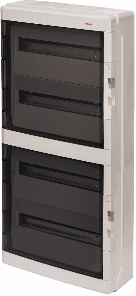 Plastová rozvodnice AcquaPLUS 39072 ve vyšším krytí IP65, EXTRA prostorná (57mm pod DIN lištou), 4x18mod., rozměry: 878x432x160mm, svorkovnice PE/N součástí, montáž na omítku, průhledná dvířka, barva: světle šedá. Plastová rozvodnice AcquaPLUS 39072 ve vyšším krytí IP65, rozměry: 878x432x160mm (výška x šířka x hloubka), prostor pro kabeláž pod DIN lištou/lištami: 57mm, 4x18mod.(TE), IK08, plastová, materiál ABS, zkouška žhavou smyčkou 650°C, bezhalogenová a UV odolná, montáž na povrch, barva: světle šedá, rozsah teplot -25°C + 85°C, aplikované normy: EN 62208, balení: 1ks (krabice), polykarbonátová průhledná dvířka, PE svorkovnice součástí (4ks 10x 10mm2 a 10x16mm2) / N svorkovnice součástí (4ks 10x 10mm2 a 10x16mm2), předlisované otvory zaslepené gumovou membránovou průchodkou (stačí propíchnout) - kompatibilní s klasickými kabelovými vývodkami (vrchní strana: 2x20, 8x25, 1x35; spodní strana: 2x20, 8x25, 1x35), schopnost rozptylu tepla: 144W, dokoupitelné příslušenství: kovový zámek 3900. Pro montáž na hořlavé podklady je nutné použít nehořlavou podložku.