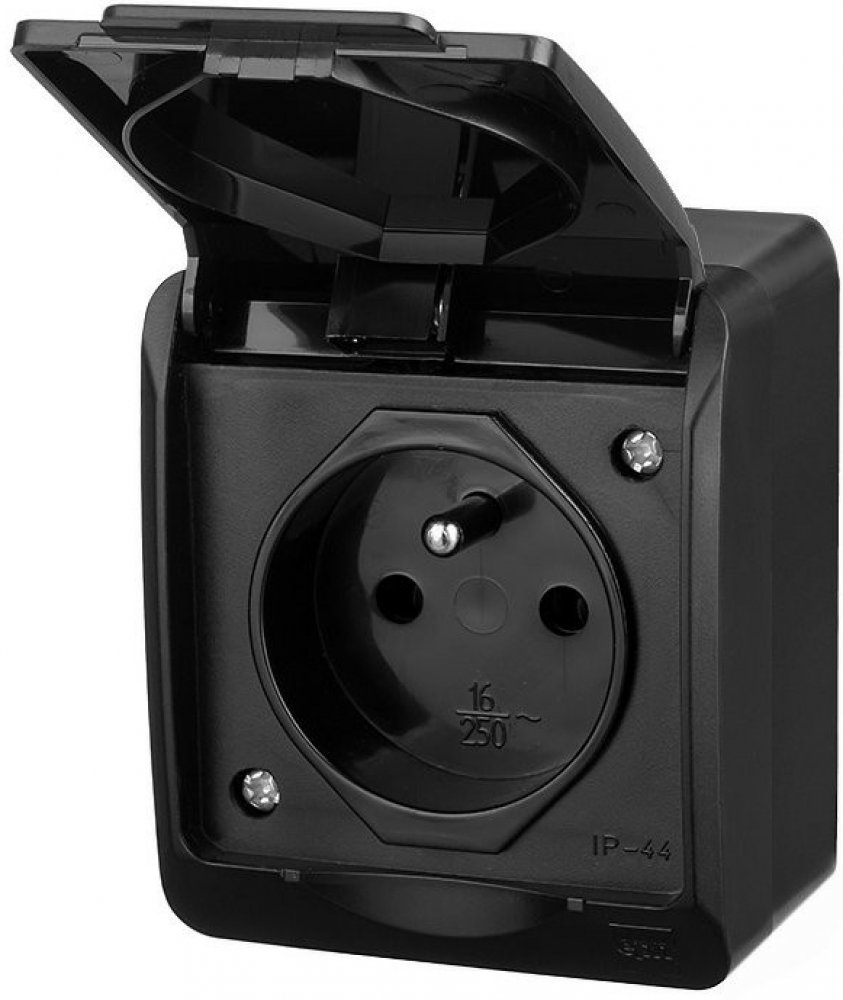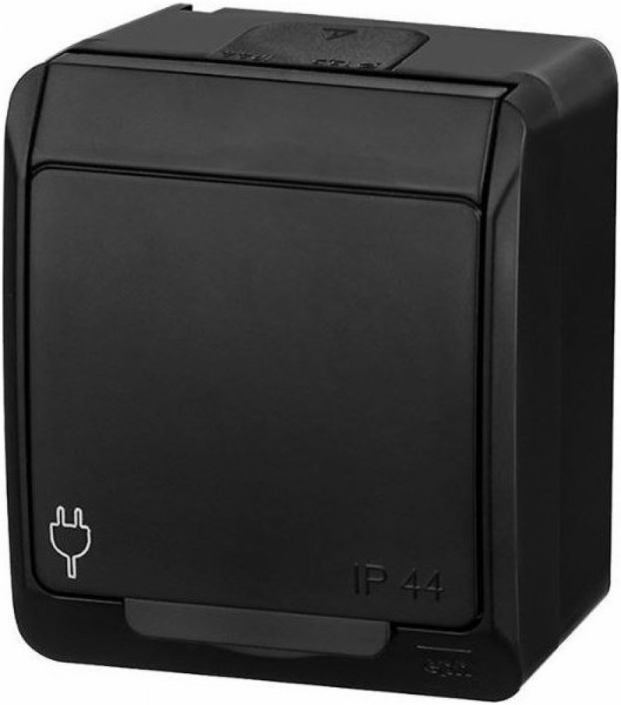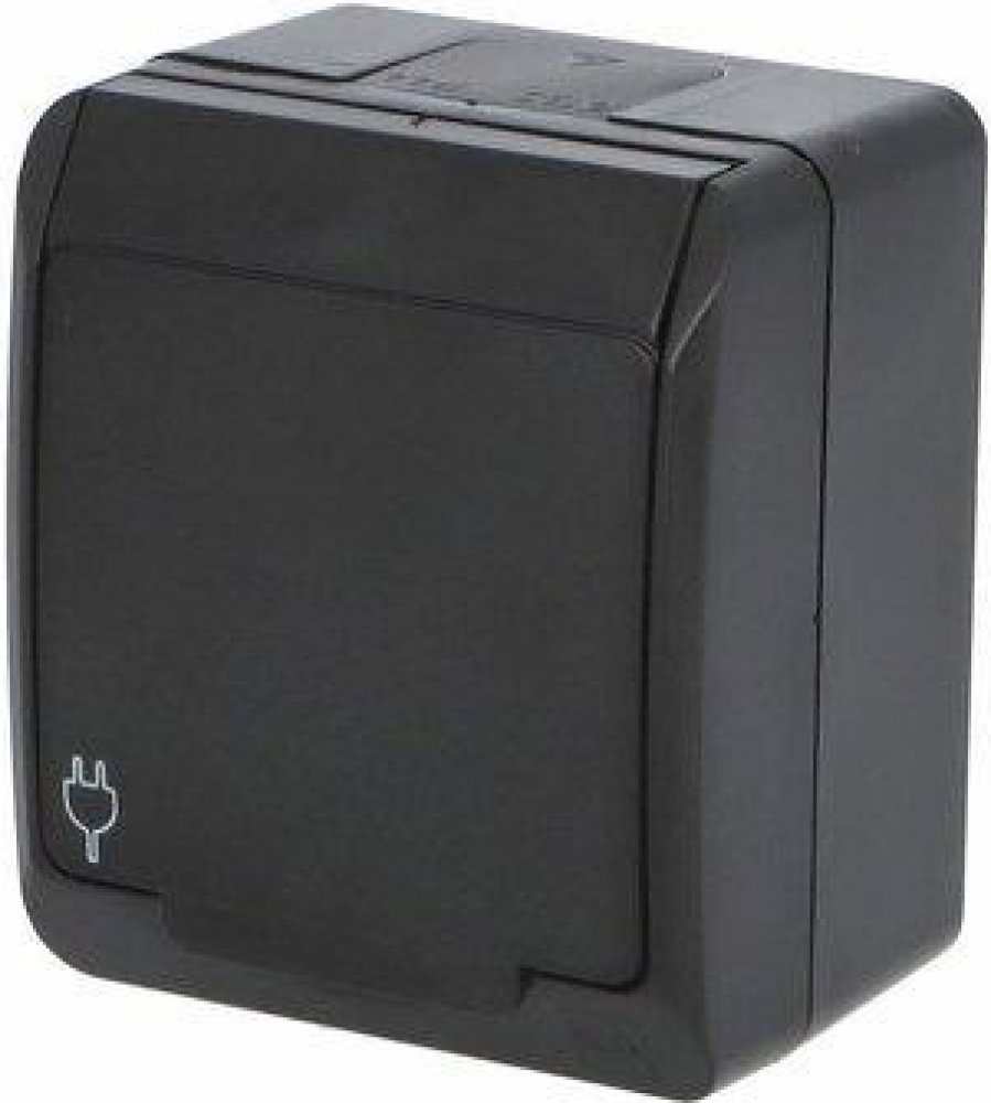 Venkovní jednoduchá zásuvka Famatel 5321-09 GALATEA IP44 Zásuvka v černé barvě s krytím IP44 pro venkovní instalaci a montáží na zeď.