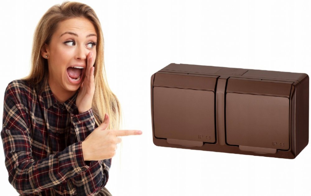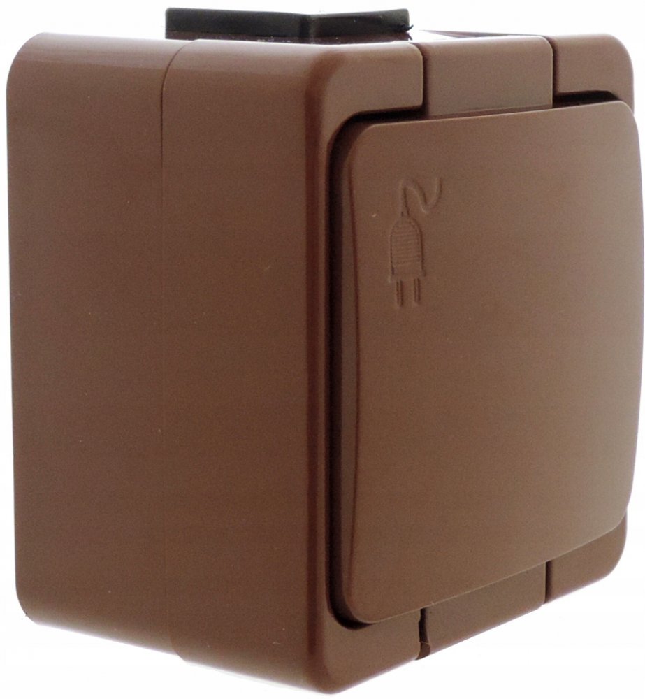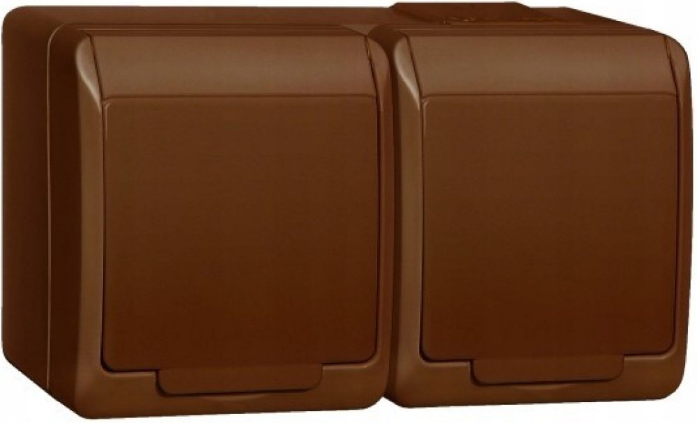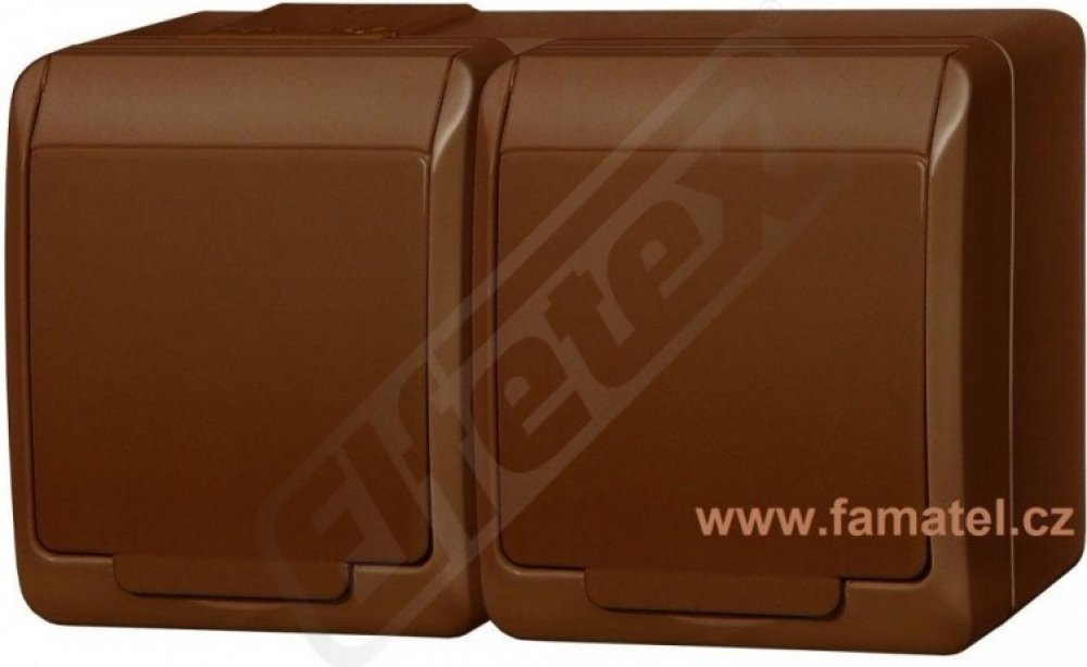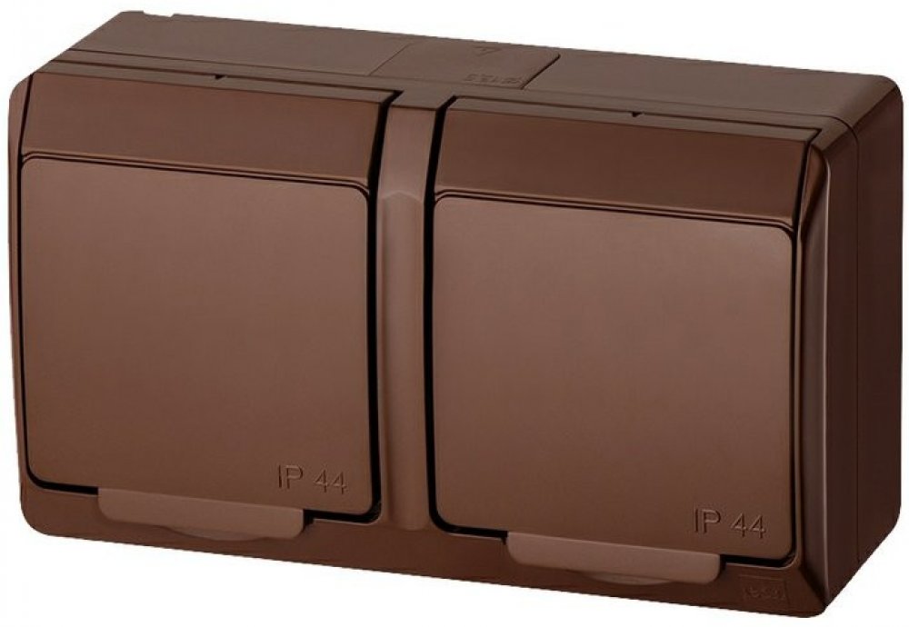 GALATEA 5322-06 IP44 Zásuvka 2x 2P+PE, 2-násobná vodorovná (hnědá / průhledné víčko).