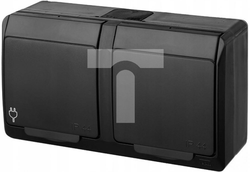 Produkt: GALATEA IP44 Zásuvka 2x 2P+PE, 2-násobná vodorovná (černá)