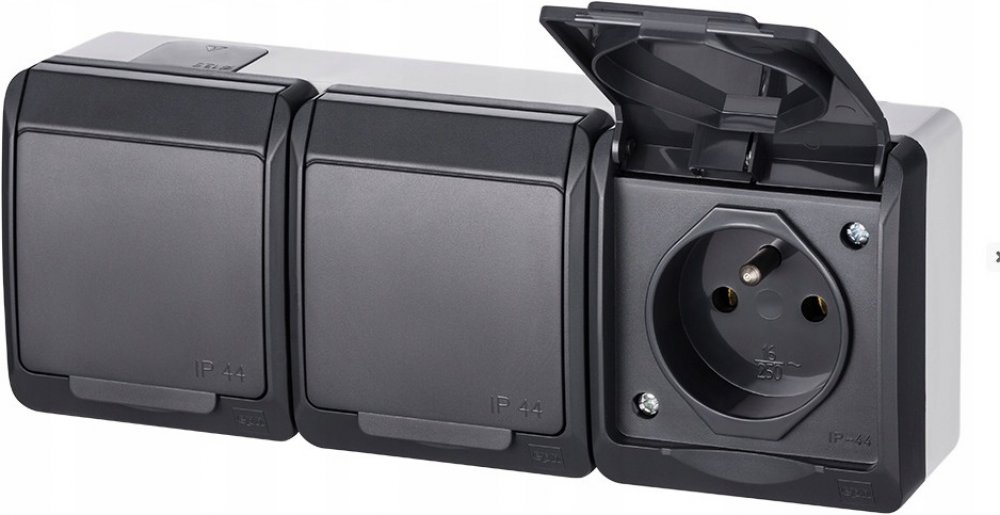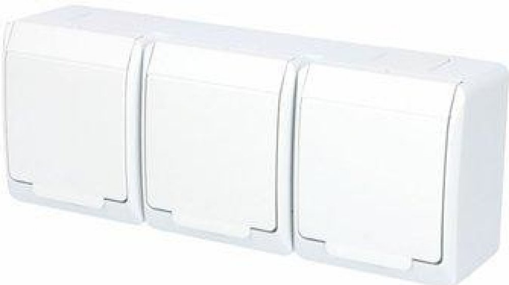 Venkovní trojzásuvka ve vyšším krytí GALATEA IP44 5323-07 s gumovou průchodkou (pro kabely do průměru 13,5 mm a trubky do 16 mm) je speciálně navržena do prostředí se zvýšeným výskytem vlhkosti a prachu. Trojzásuvka má odolnost proti mechanickým nárazům IK07 a je tedy vhodná k venkovnímu použití, v domácnostech, sportovištích, montážních halách, garážích, dílnách apod.