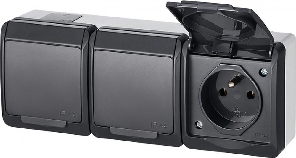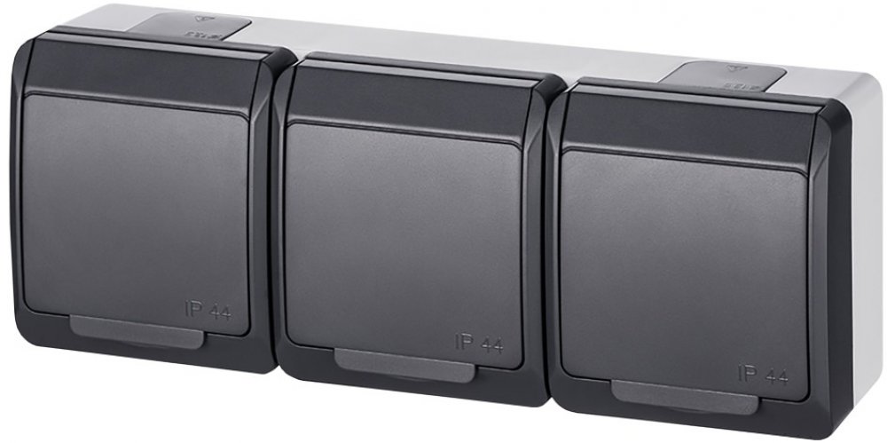 Venkovní trojitá zásuvka s víčkem IP44 Galatea antracitová, na zeď